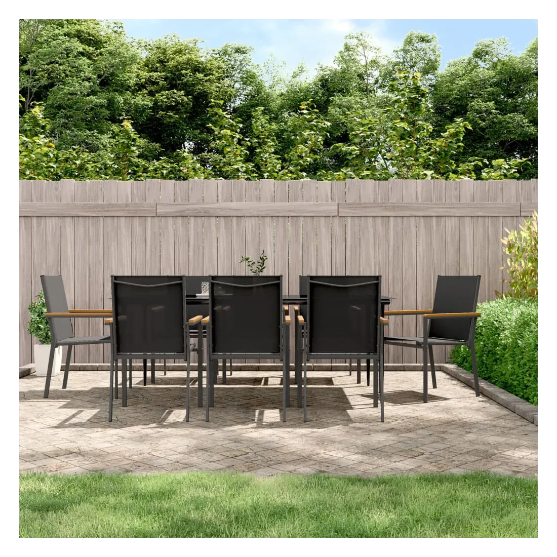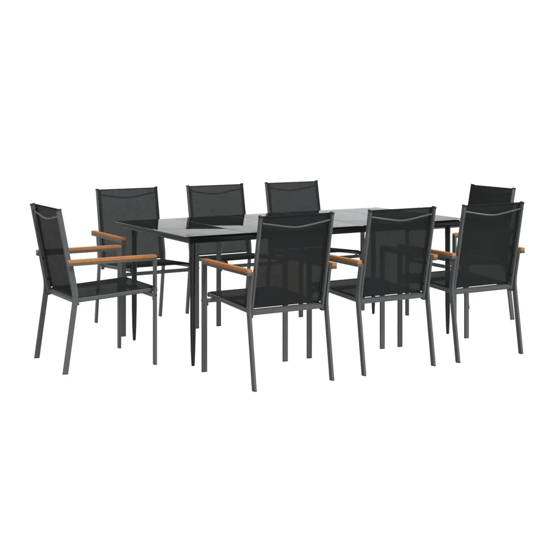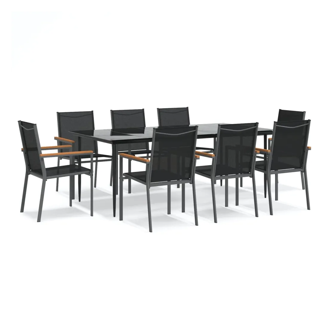 Détendez-vous et profitez d'un bon thé de l'après-midi ou de n'importe quel repas avec votre famille et vos amis autour de cet ensemble de salle à manger de jardin ! Matériau durable : le tissu en textilène permet à l'air de circuler librement à travers lui tout en étant résistant aux rayons UV. Le textilène est donc idéal pour les temps chauds. En tant que matériau durable et solide, il est très résistant aux déchirures, aux perforations et aux moisissures.Cadre robuste et stable : les cadres en acier rendent l'ensemble à manger robuste et stable pour une utilisation quotidienne à l'extérieur.Dessus de table pratique : le plateau lisse de la table à manger est en verre trempé facile à nettoyer avec un chiffon humide. De plus, il offre un excellent support pour contenir vos repas, boissons et autres objets décoratifs.Assise confortable : la chaise à manger est conçue avec un dossier et des accoudoirs pour vous offrir une expérience d'assise confortable. Remarque :Pour que vos meubles d'extérieur restent beaux, nous vous recommandons de les protéger avec une housse imperméable.