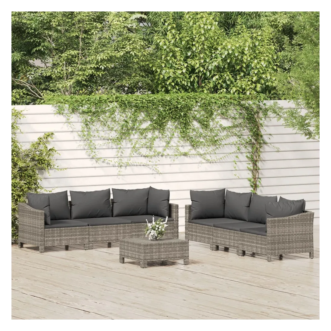 Cet ensemble de salon de jardin tendance, au design élégant et contemporain, est un excellent choix pour vous détendre dans votre jardin. Matériau durable : la résine tressée, également connue sous le nom de poly rotin, est un matériau synthétique solide et nécessitant peu d'entretien qui ressemble au rotin naturel. Elle est légère, facile à nettoyer et couramment utilisée pour les meubles d'extérieur en raison de sa durabilité et de ses propriétés de résistance aux intempéries.Cadre robuste et stable : le cadre en acier enduit de poudre assure la solidité et la stabilité du meuble de jardin pour une utilisation quotidienne à l'extérieur.Conception modulaire : cet ensemble de meubles d'extérieur a une conception modulaire, ce qui le rend complètement flexible et facile à déplacer, afin que vous puissiez créer un agencement de meubles d'extérieur personnalisé. Vous pouvez également trouver les pièces individuelles dans notre boutique en ligne pour arranger vos propres modèles de meubles.Expérience de siège confortable : avec les coussins de siège et de dossier bien rembourrés, l'ensemble de salon d'extérieur est très confortable. Bon à savoir :Pour faciliter au maximum le montage, chaque produit est livré avec des instructions.Pour que vos meubles d'extérieur restent beaux, nous vous recommandons de les protéger avec une housse imperméable.
