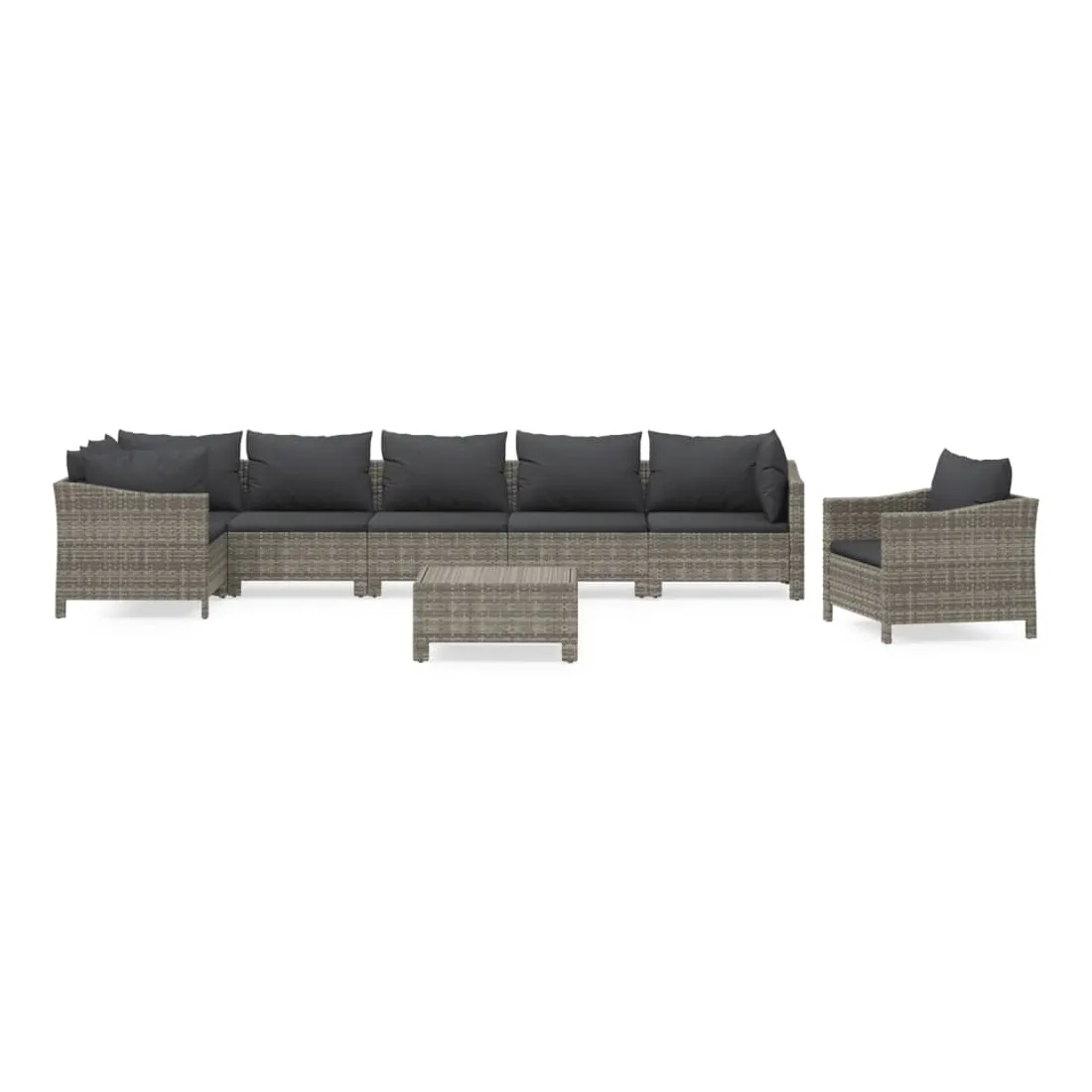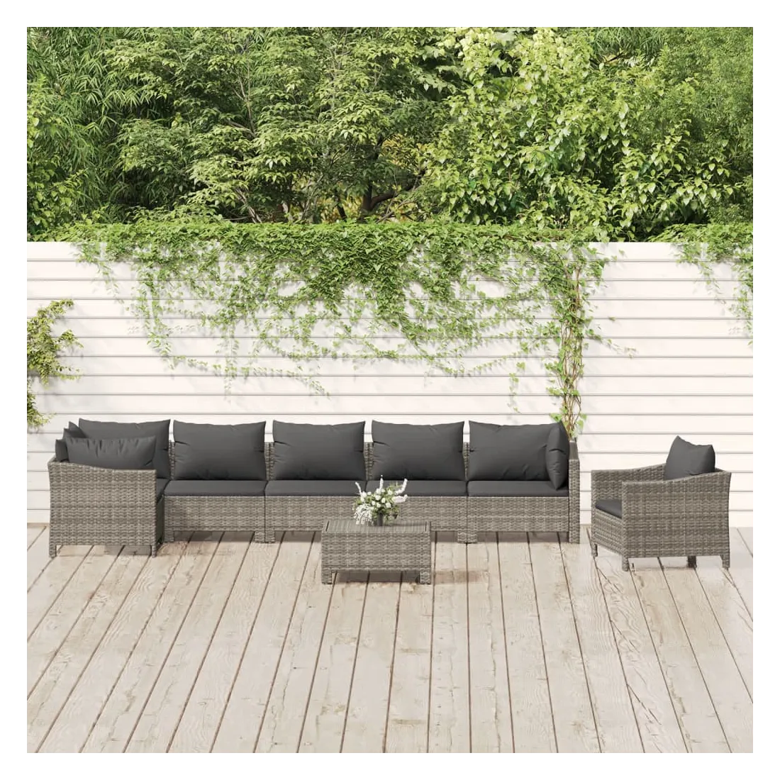 Cet ensemble de salon de jardin tendance, au design élégant et contemporain, est un excellent choix pour vous détendre dans votre jardin. Matériau durable : la résine tressée, également connue sous le nom de rotin poly, résiste aux intempéries et est facile à nettoyer. Elle reste belle à l'extérieur pendant une longue période. Elle est plus économique que d'autres matériaux, tout en offrant une excellente qualité, une commodité et un aspect esthétique.Cadre stable : l'acier est un matériau exceptionnellement dur et résistant. Il offre robustesse et stabilité. Le revêtement en poudre sur l'acier crée une couche protectrice contre l'usure.Conception modulaire : chaque pièce est facile à déplacer, ce qui vous permet de créer facilement différents agencements adaptés à vos besoins. Vous pouvez également trouver les pièces individuelles dans notre boutique en ligne pour arranger vos propres modèles de meubles.Expérience de siège confortable : avec les coussins de siège et de dossier bien rembourrés, l'ensemble de salon d'extérieur est très confortable. Bon à savoir :Pour faciliter au maximum le montage, chaque produit est livré avec des instructions. Remarque :Pour que vos meubles d'extérieur restent beaux, nous vous recommandons de les protéger avec une housse imperméable.