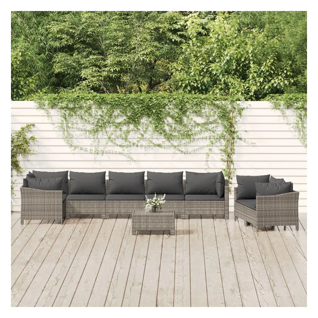 Cet ensemble de salon de jardin tendance, au design élégant et contemporain, est un excellent choix pour vous détendre dans votre jardin. Matériau durable : la résine tressée, également connue sous le nom de rotin poly, résiste aux intempéries et est facile à nettoyer. Elle reste belle à l'extérieur pendant une longue période. Elle est plus économique que d'autres matériaux, tout en offrant une excellente qualité, une commodité et un aspect esthétique.Cadre stable : l'acier est un matériau exceptionnellement dur et résistant. Il offre robustesse et stabilité. Le revêtement en poudre sur l'acier crée une couche protectrice contre l'usure.Conception modulaire : chaque pièce est facile à déplacer, ce qui vous permet de créer facilement différents agencements adaptés à vos besoins. Vous pouvez également trouver les pièces individuelles dans notre boutique en ligne pour arranger vos propres modèles de meubles.Expérience de siège confortable : avec les coussins de siège et de dossier bien rembourrés, l'ensemble de salon d'extérieur est très confortable. Bon à savoir :Pour faciliter au maximum le montage, chaque produit est livré avec des instructions. Remarque :Pour que vos meubles d'extérieur restent beaux, nous vous recommandons de les protéger avec une housse imperméable.