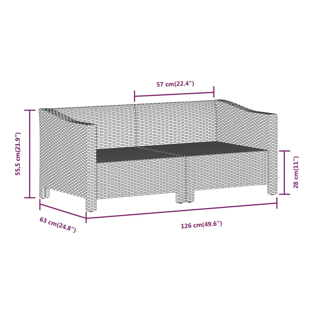 - Dimensions du coussin de siège : 57/63 x 55 x 3 cm (l x P x é)