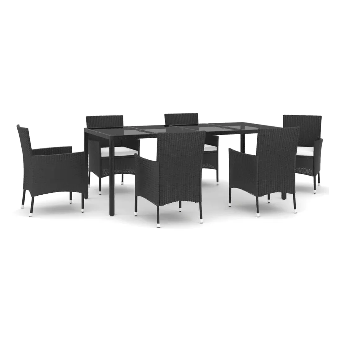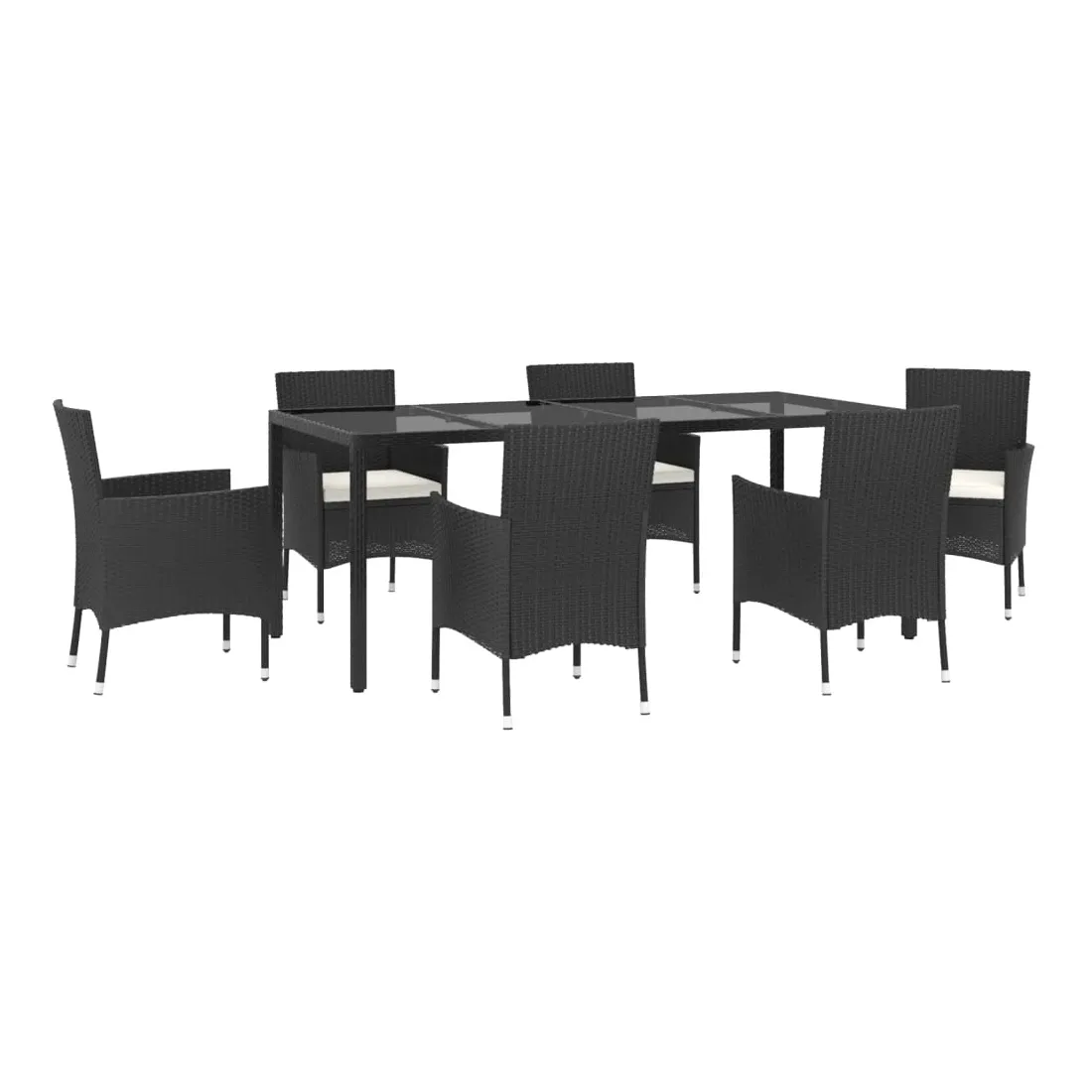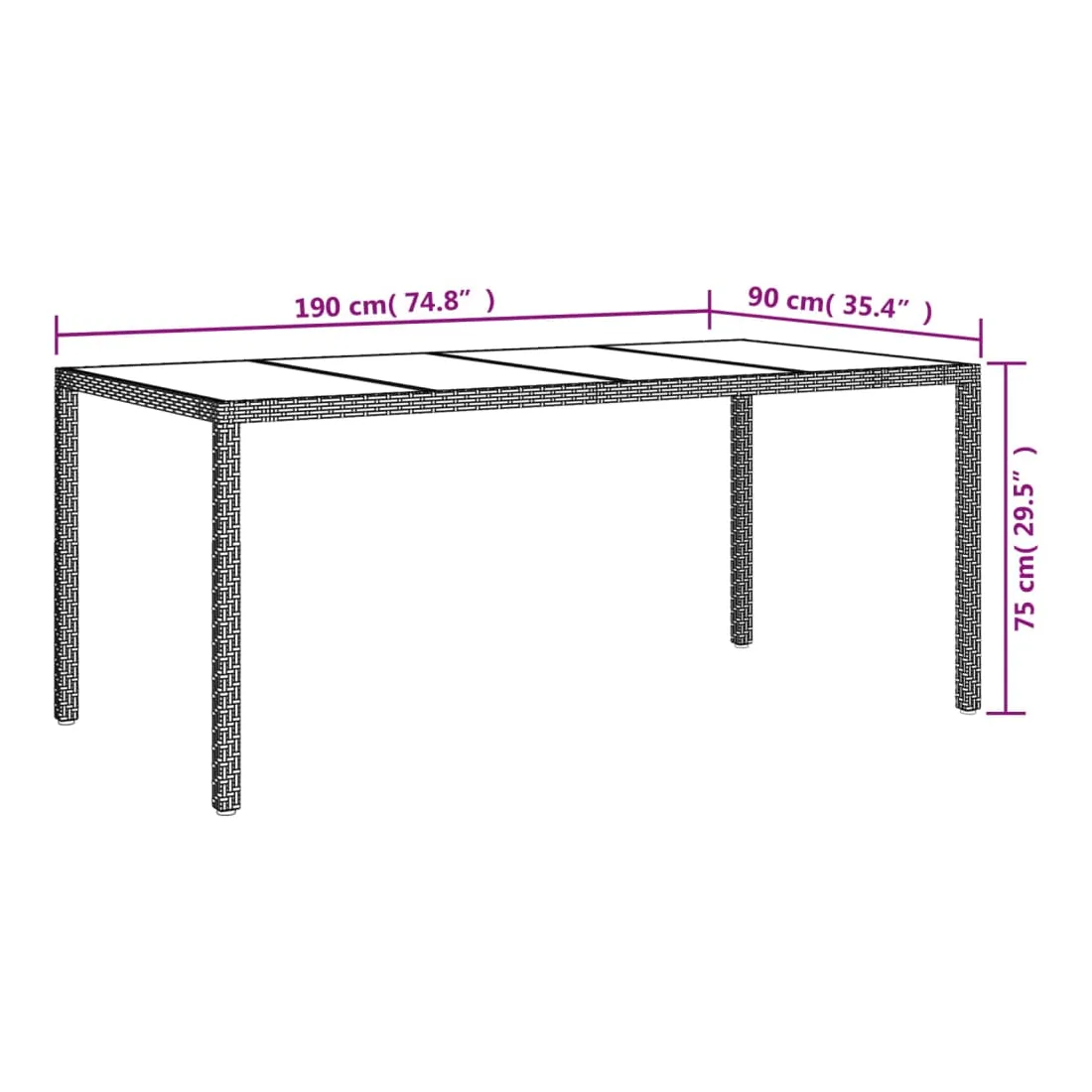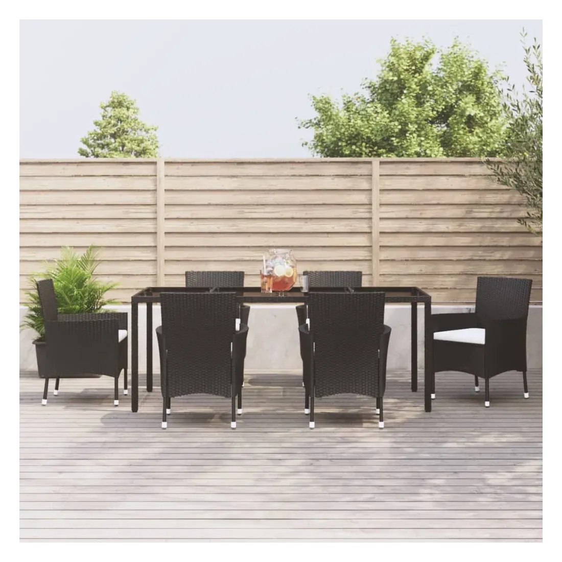 Cet ensemble élégant de salle à manger de jardin vous permet de passer des moments agréables et confortables avec votre famille et vos amis. Matériau résistant aux intempéries : la résine tressée, également connue sous le nom de rotin poly, résiste aux intempéries et est facile à nettoyer. Elle reste belle à l'extérieur pendant une longue période. Elle offre une excellente qualité, commodité et un aspect esthétique. Cadre robuste et stable : le cadre en acier enduit de poudre de l'ensemble à manger assure robustesse et stabilité. Expérience d'assise confortable : les coussins bien rembourrés des chaises à manger offrent un confort ultime pour votre temps d'assise.Table pratique : le dessus lisse de la table de salle à manger est en verre trempé, facile à nettoyer avec un chiffon humide. De plus, le dessus robuste est parfait pour placer des repas, des boissons et d'autres objets décoratifs.Conception flexible : grâce à la construction légère, ces chaises à dîner de jardin sont faciles à déplacer. Remarque :Pour que vos meubles d'extérieur restent beaux, nous vous recommandons de les protéger avec une housse imperméable.