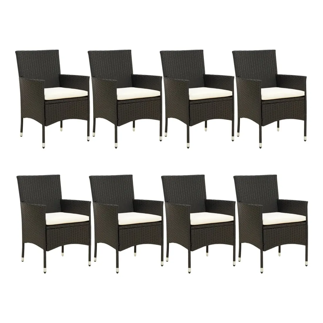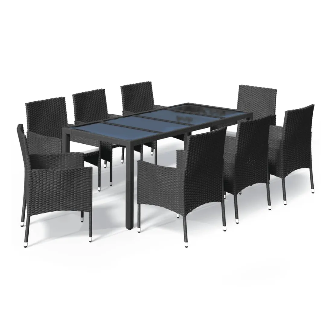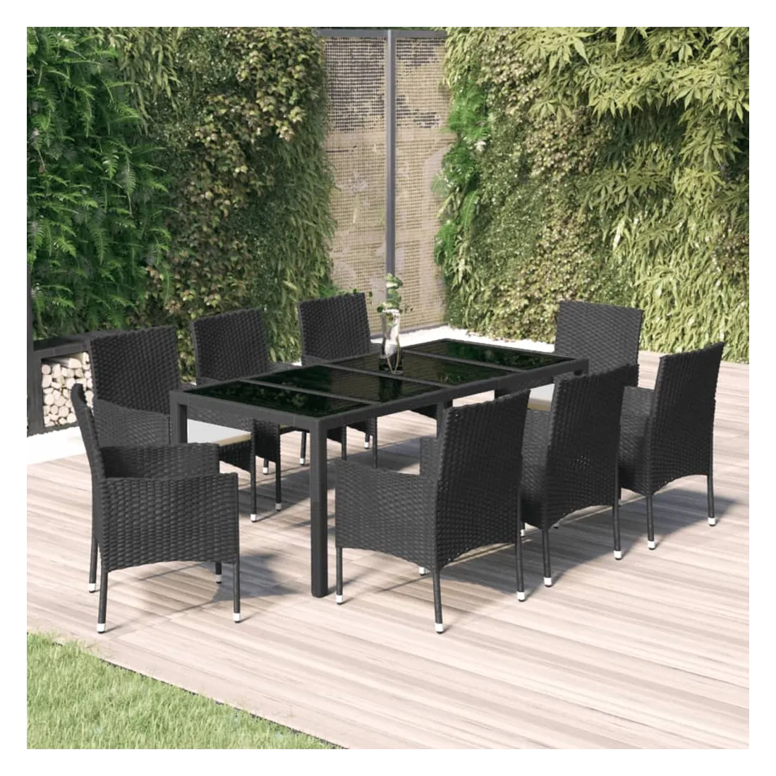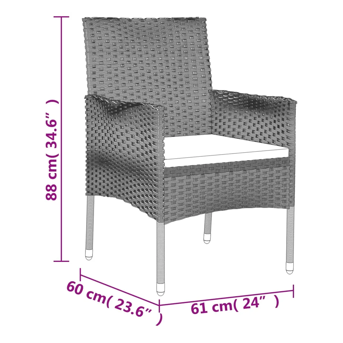 Cet ensemble élégant de salle à manger de jardin vous permet de passer des moments agréables et confortables avec votre famille et vos amis. Matériau résistant aux intempéries : la résine tressée, également connue sous le nom de rotin poly, résiste aux intempéries et est facile à nettoyer. Elle reste belle à l'extérieur pendant une longue période. Elle offre une excellente qualité, commodité et un aspect esthétique. Cadre robuste et stable : le cadre en acier enduit de poudre de l'ensemble à manger assure robustesse et stabilité. Expérience d'assise confortable : les coussins bien rembourrés des chaises à manger offrent un confort ultime pour votre temps d'assise.Table pratique : le dessus lisse de la table de salle à manger est en verre trempé, facile à nettoyer avec un chiffon humide. De plus, le dessus robuste est parfait pour placer des repas, des boissons et d'autres objets décoratifs.Conception flexible : grâce à la construction légère, ces chaises à dîner de jardin sont faciles à déplacer. Remarque :Pour que vos meubles d'extérieur restent beaux, nous vous recommandons de les protéger avec une housse imperméable.