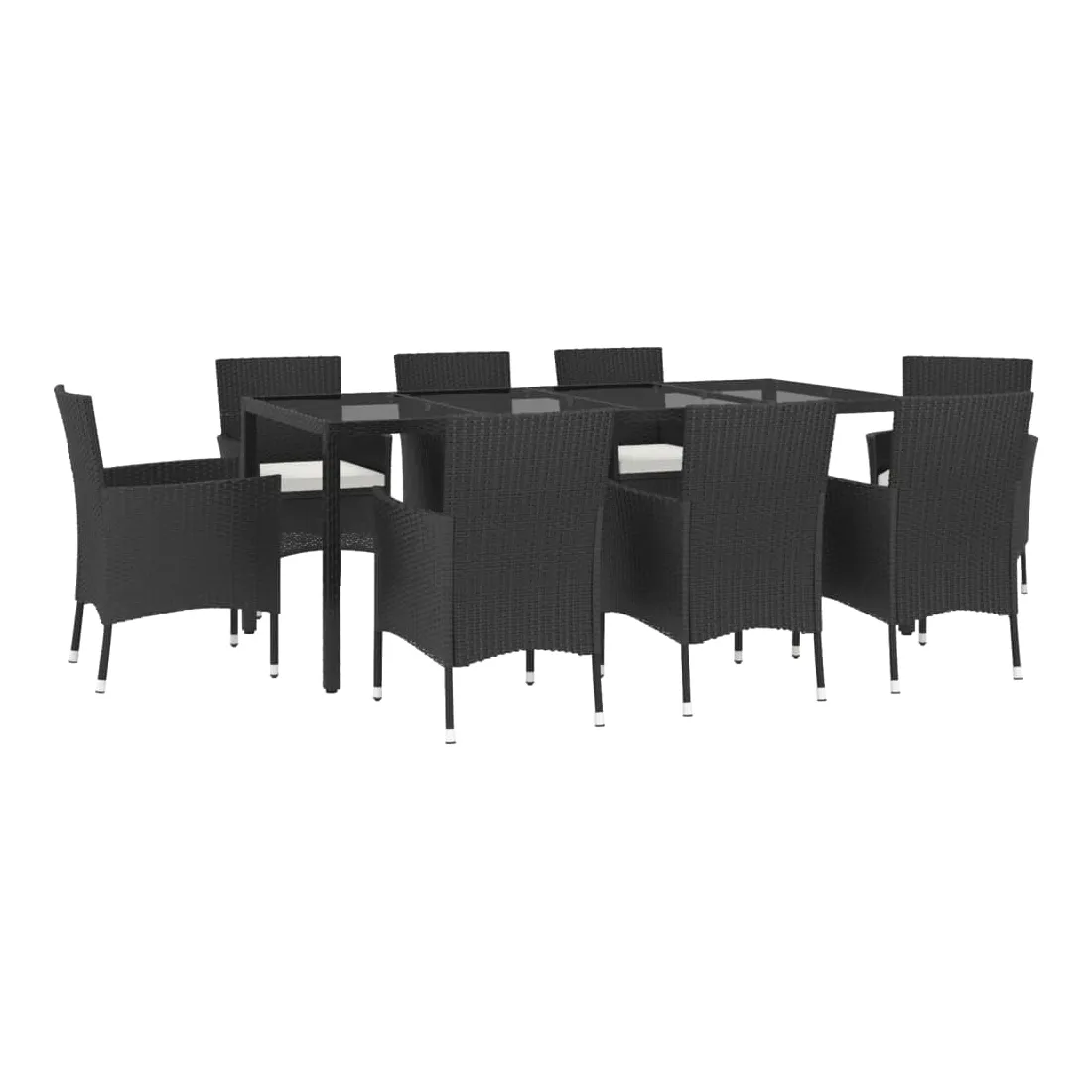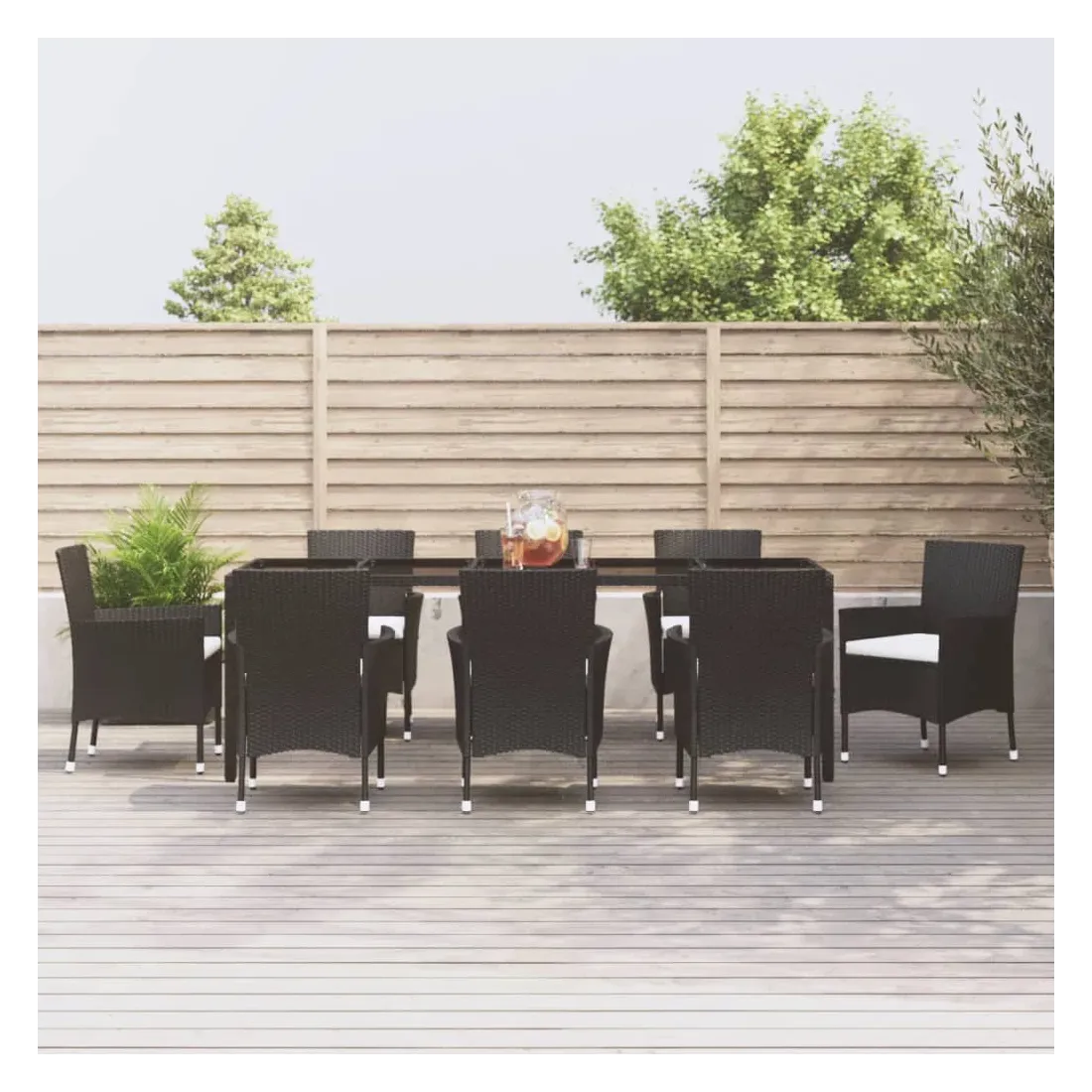 Cet ensemble élégant de salle à manger de jardin vous permet de passer des moments agréables et confortables avec votre famille et vos amis. Matériau résistant aux intempéries : la résine tressée, également connue sous le nom de rotin poly, résiste aux intempéries et est facile à nettoyer. Elle reste belle à l'extérieur pendant une longue période. Elle offre une excellente qualité, commodité et un aspect esthétique. Cadre robuste et stable : le cadre en acier enduit de poudre de l'ensemble à manger assure robustesse et stabilité. Expérience d'assise confortable : les coussins bien rembourrés des chaises à manger offrent un confort ultime pour votre temps d'assise.Table pratique : le dessus lisse de la table de salle à manger est en verre trempé, facile à nettoyer avec un chiffon humide. De plus, le dessus robuste est parfait pour placer des repas, des boissons et d'autres objets décoratifs.Conception flexible : grâce à la construction légère, ces chaises à dîner de jardin sont faciles à déplacer. Remarque :Pour que vos meubles d'extérieur restent beaux, nous vous recommandons de les protéger avec une housse imperméable.