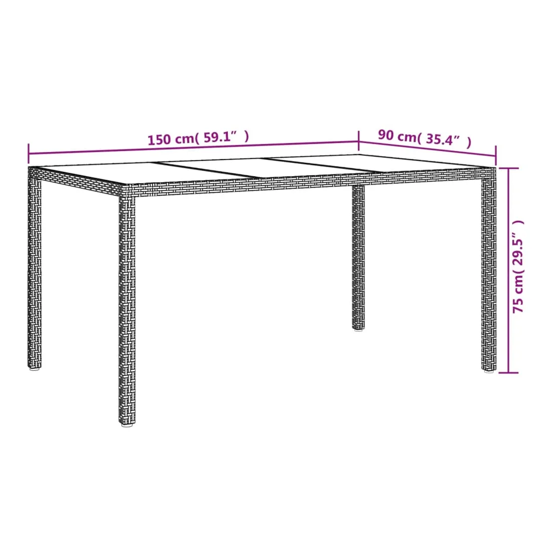- longueur de table de 150 cm