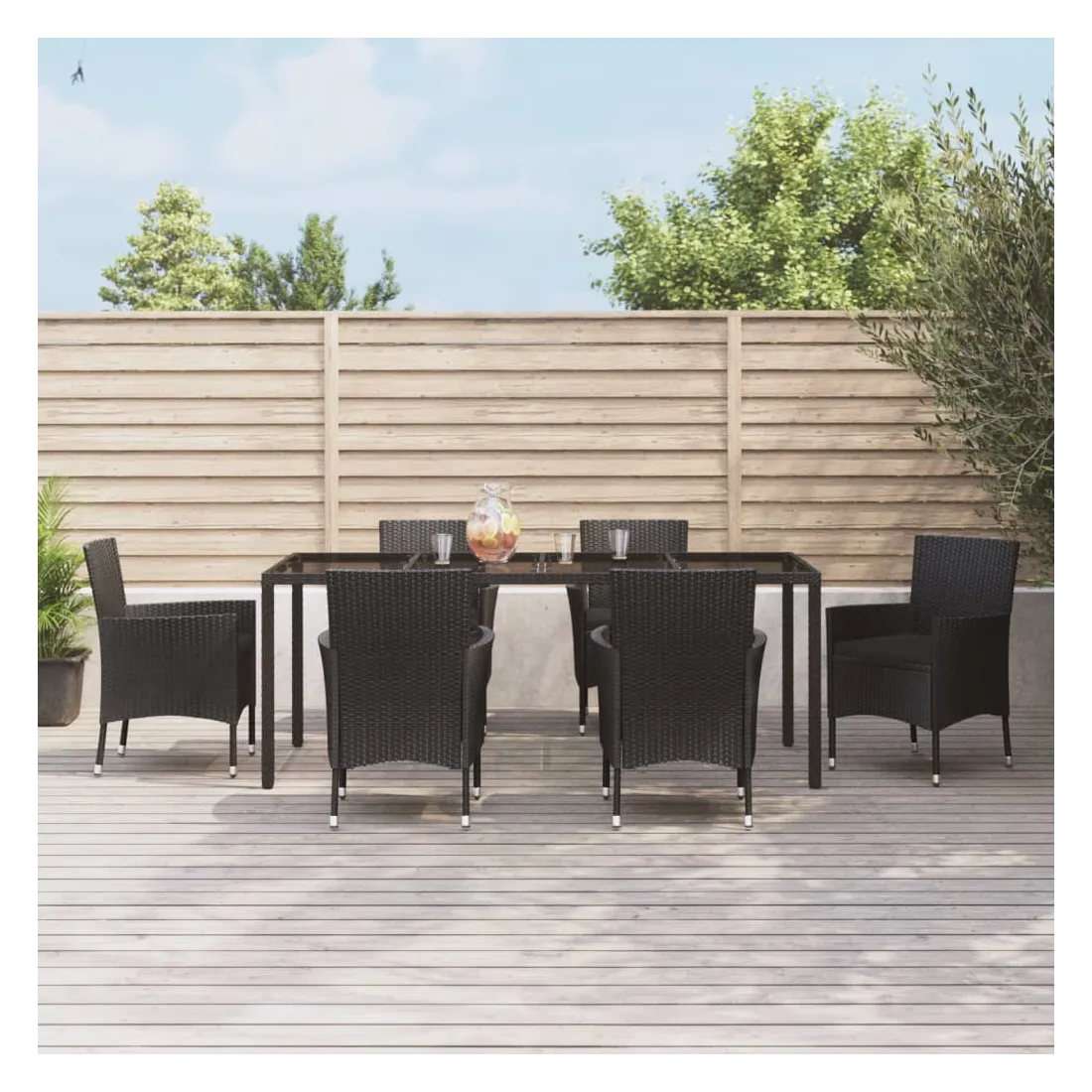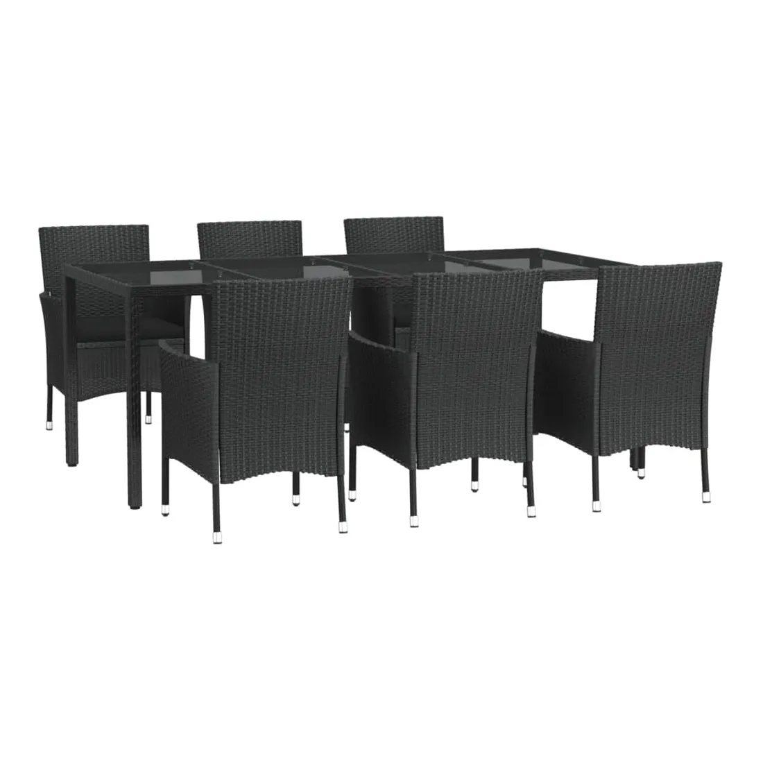vidaXLCet ensemble élégant de salle à manger de jardin vous permet de passer des moments agréables et confortables avec votre famille et vos amis. Matériau résistant aux intempéries : la résine tressée, également connue sous le nom de rotin poly, résiste aux intempéries et est facile à nettoyer. Elle reste belle à l'extérieur pendant une longue période. Elle offre une excellente qualité, commodité et un aspect esthétique. Cadre robuste et stable : le cadre en acier enduit de poudre de l'ensemble à manger assure robustesse et stabilité. Expérience d'assise confortable : les coussins bien rembourrés des chaises à manger offrent un confort ultime pour votre temps d'assise.Table pratique : le dessus lisse de la table de salle à manger est en verre trempé, facile à nettoyer avec un chiffon humide. De plus, le dessus robuste est parfait pour placer des repas, des boissons et d'autres objets décoratifs.Conception flexible : grâce à la construction légère, ces chaises à dîner de jardin sont faciles à déplacer. Remarque :Pour que vos meubles d'extérieur restent beaux, nous vous recommandons de les protéger avec une housse imperméable.