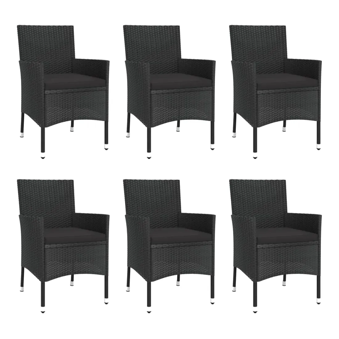 Ensemble à manger de jardin coussins 7pcs Noir Résine tressée