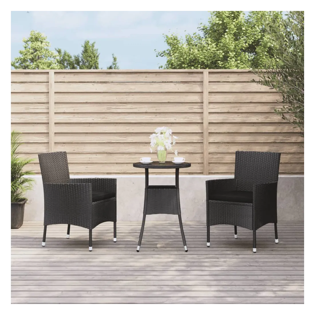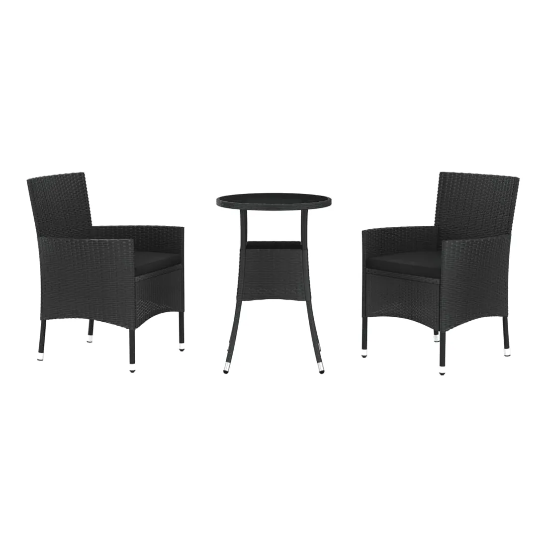 Ensemble de bistro de jardin 3 pcs coussins noir poly rotin