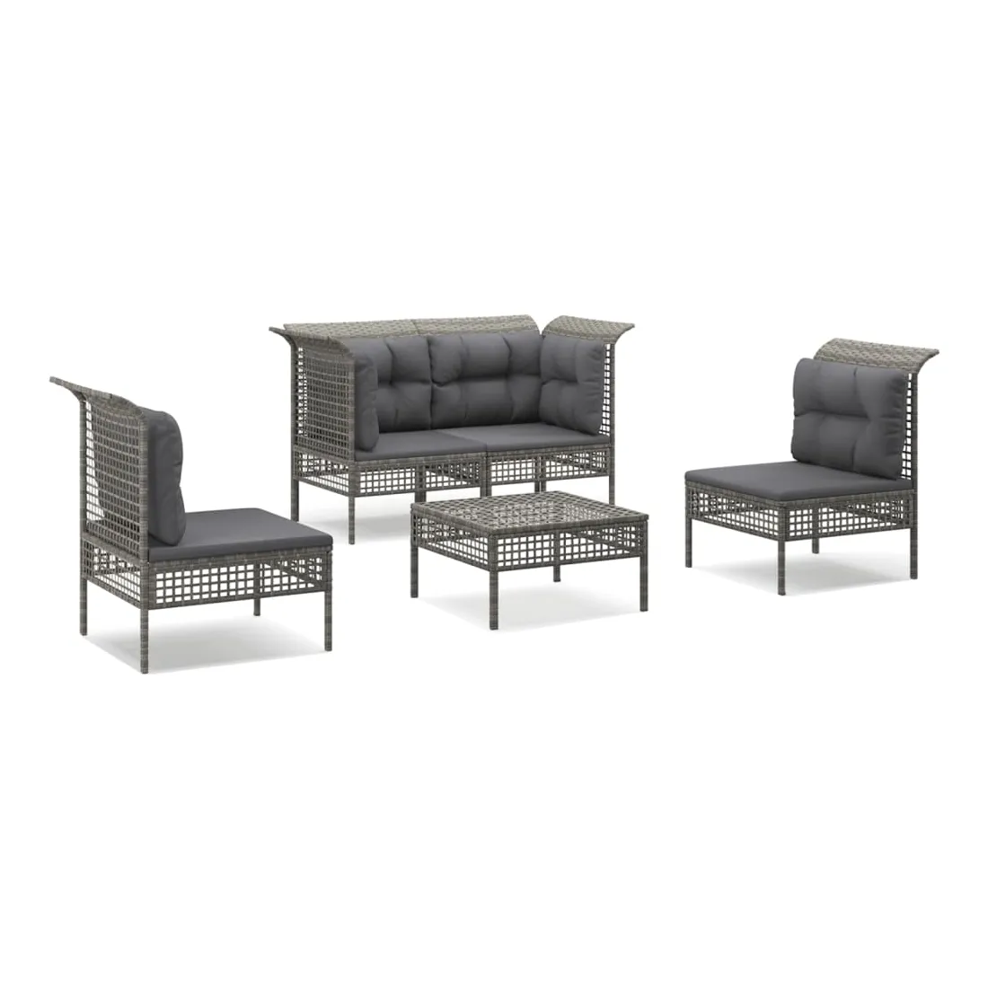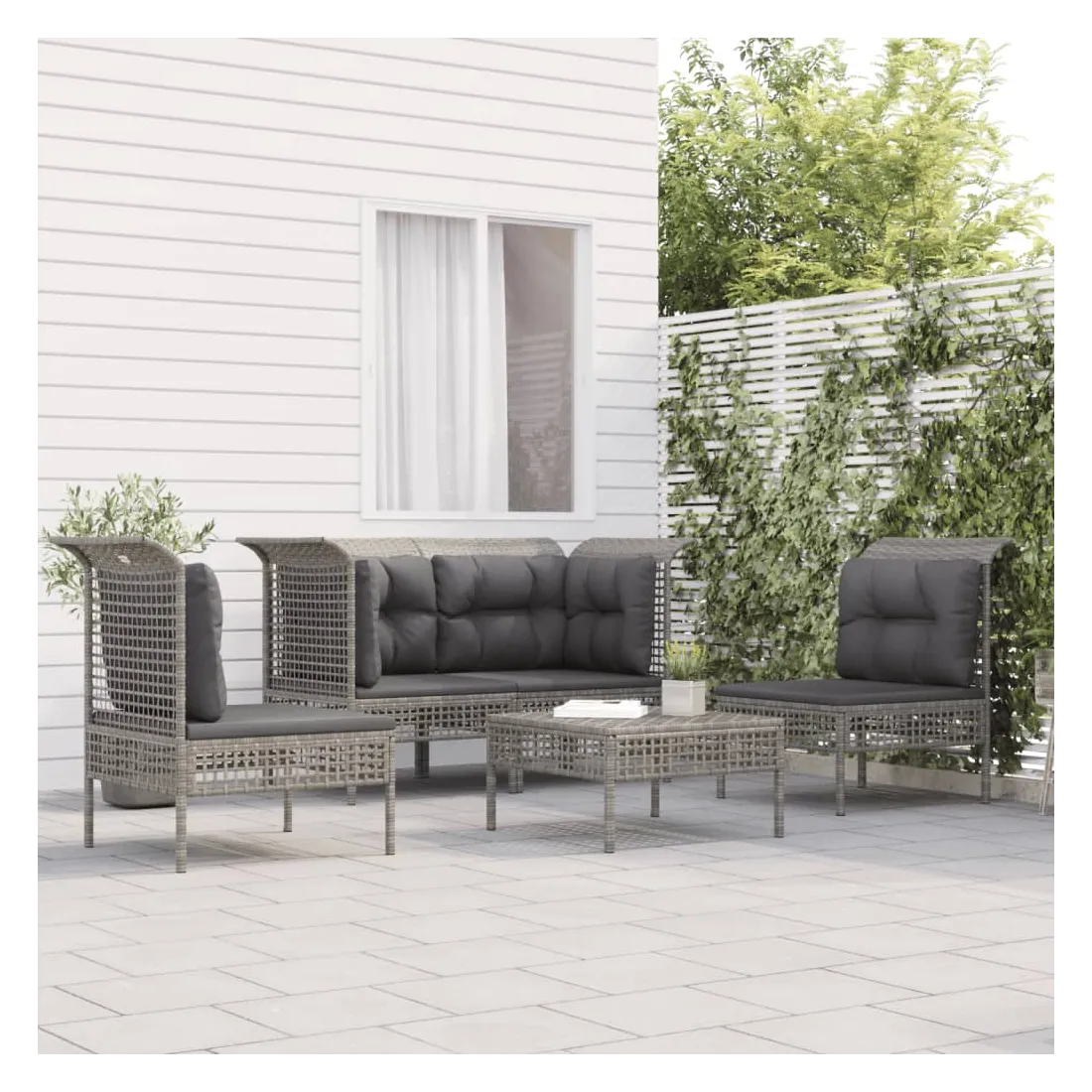 Salon de jardin 5 pcs avec coussins Gris Résine tressée