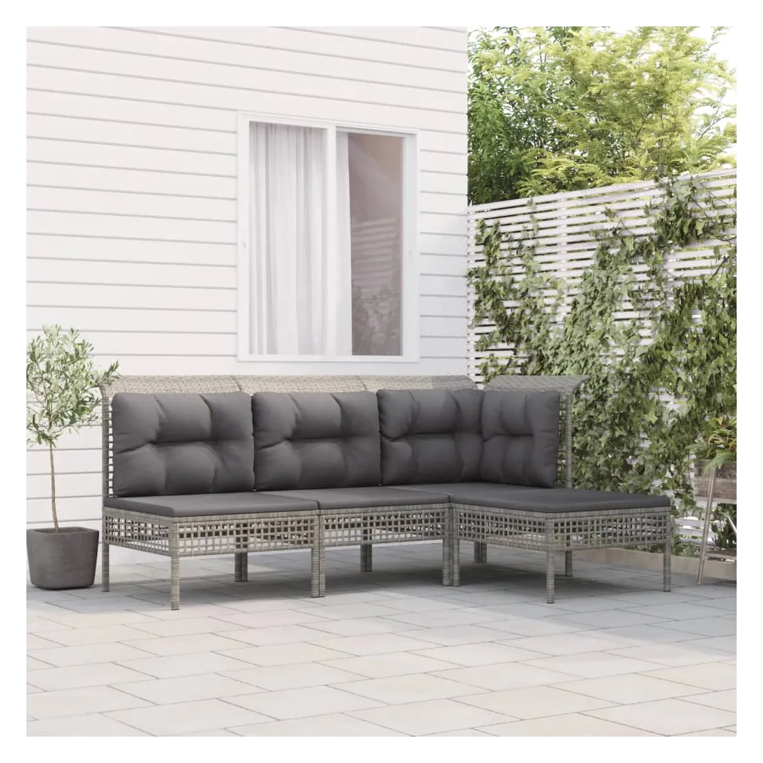 Profitez d'un moment de café confortable dans votre espace extérieur avec cet ensemble de salon de jardin ! C'est un complément parfait à votre jardin et à votre terrasse, créant une impression durable ! Matériau résistant aux intempéries : la résine tressée, également connue sous le nom de rotin poly, résiste aux intempéries et est facile à nettoyer. Elle reste belle à l'extérieur pendant une longue période. Elle offre une excellente qualité, commodité et un aspect esthétique.Cadre robuste : le cadre en acier enduit de poudre rend l'ensemble de salon d'extérieur robuste et stable pour une utilisation quotidienne à l'extérieur.Expérience d'assise confortable : les dossiers ajoutent un confort d'assise supplémentaire pour l'ensemble de salon de terrasse. De plus, les coussins bien rembourrés offrent du confort pendant votre temps d'assise.Conception modulaire : chaque article est flexible et facile à déplacer, vous pouvez donc la combiner avec d'autres segments modulaires dans la boutique en ligne pour créer vos propres configurations de salon de jardin ! Remarque :Pour que vos meubles d'extérieur restent beaux, nous vous recommandons de les protéger avec une housse imperméable.