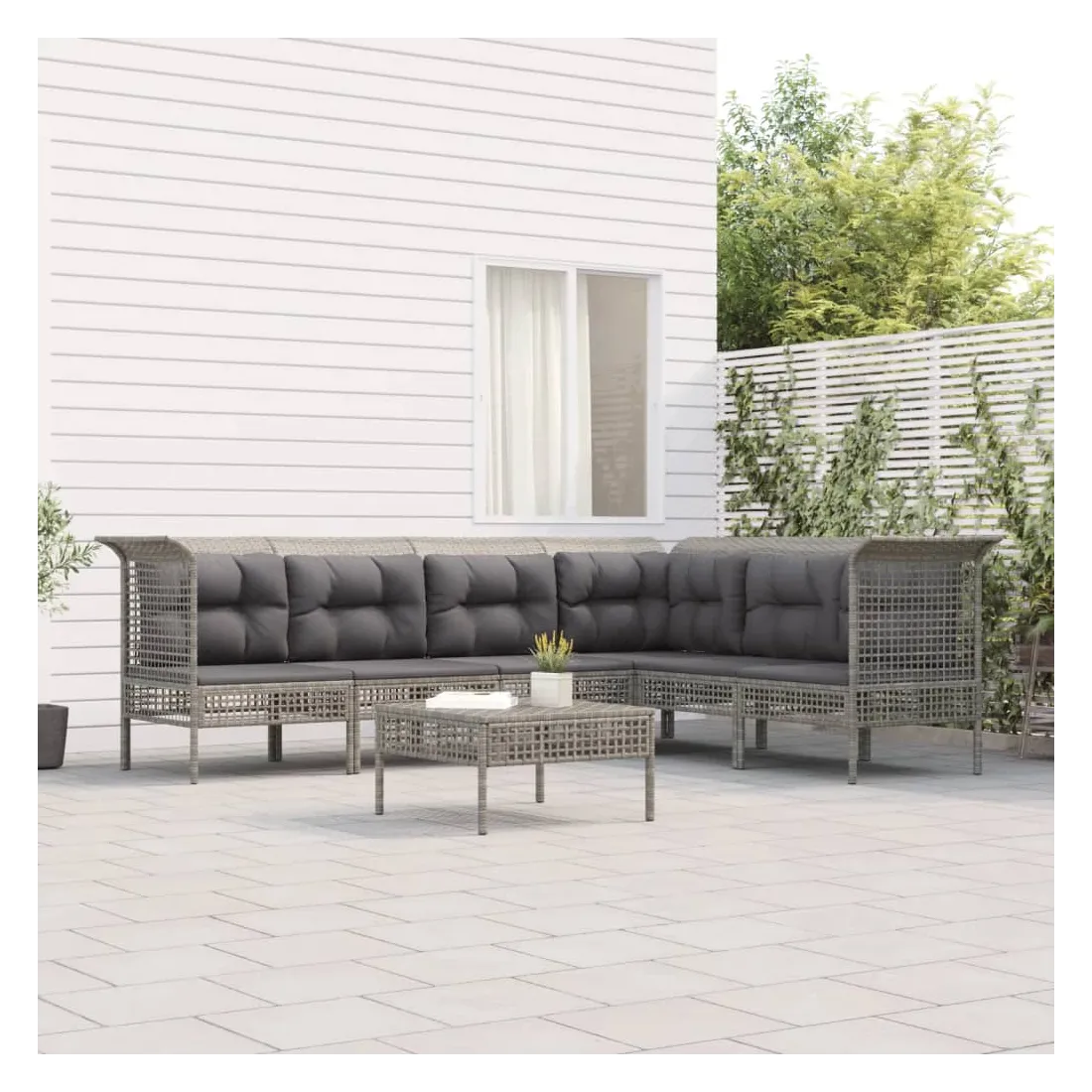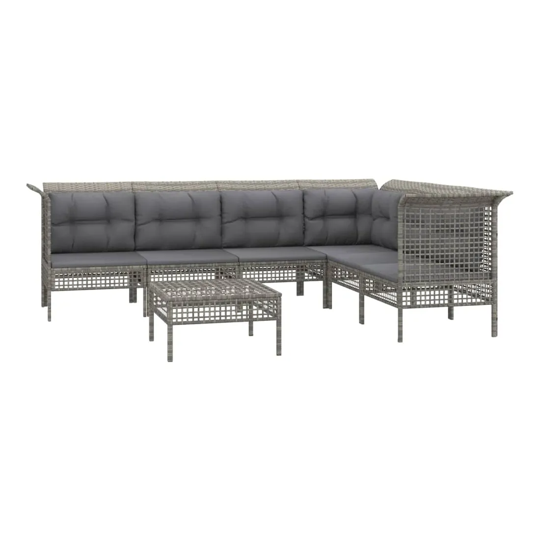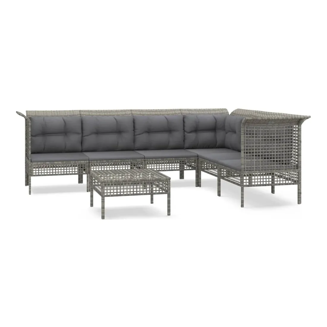 Salon de jardin 7 pcs avec coussins Gris Résine tressée