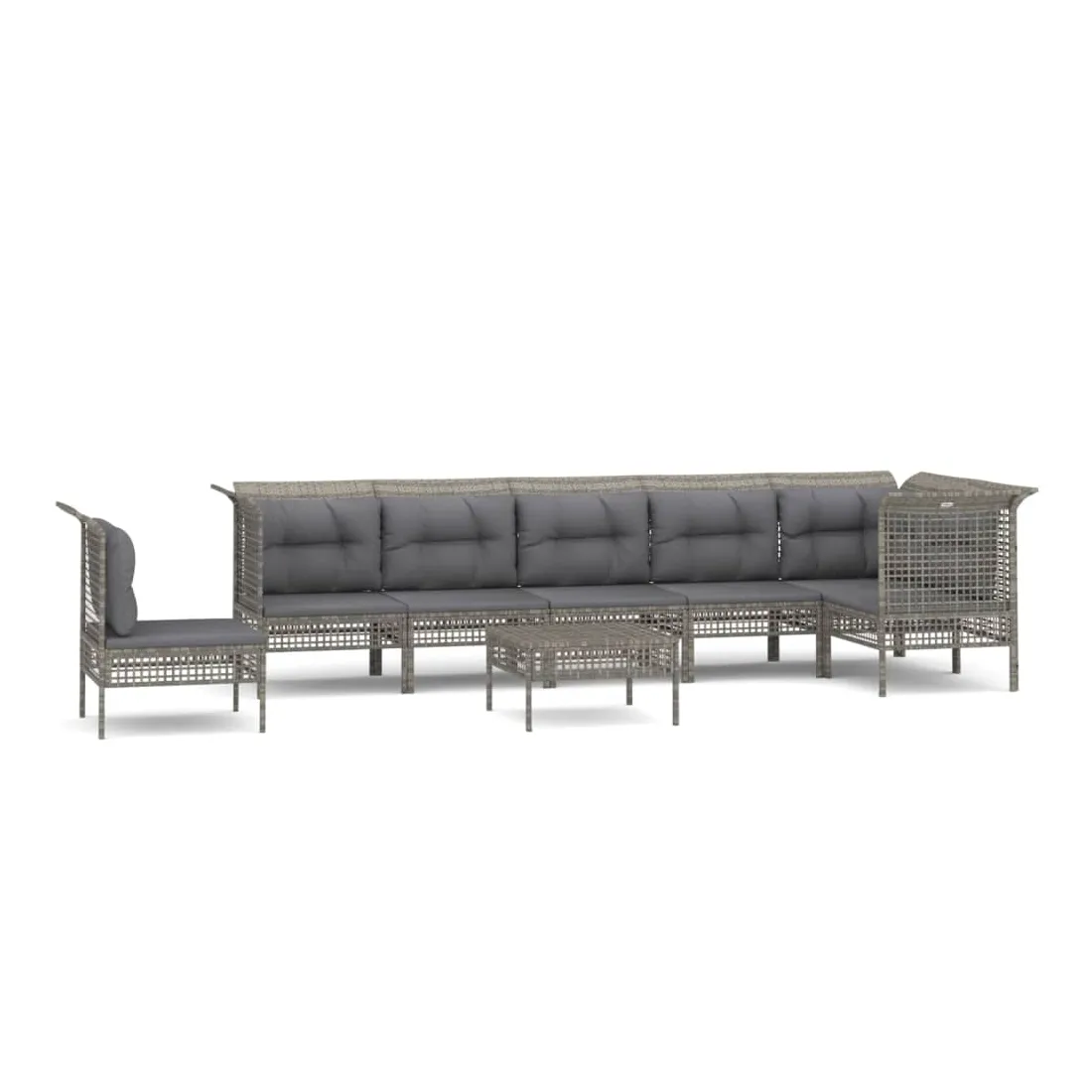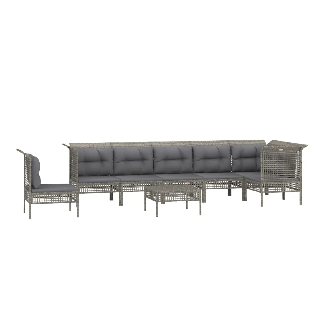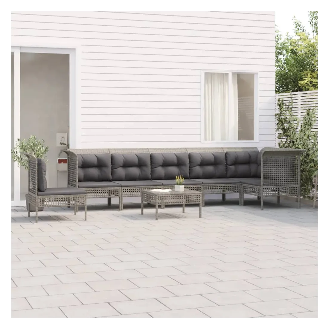 Salon de jardin 8 pcs avec coussins Gris Résine tressée