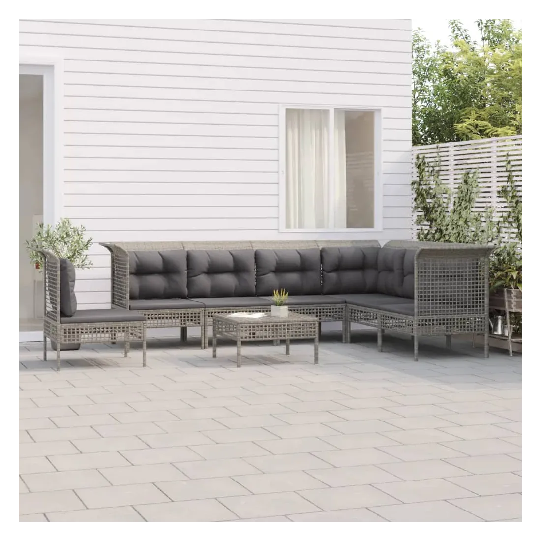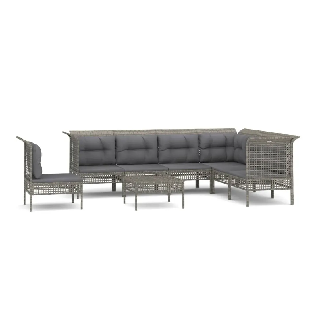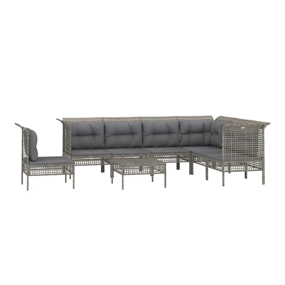 Salon de jardin 8 pcs avec coussins Gris Résine tressée