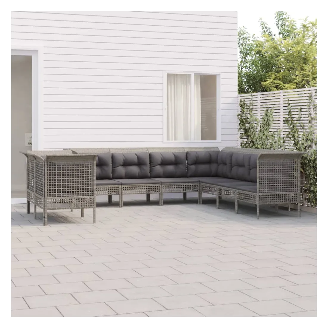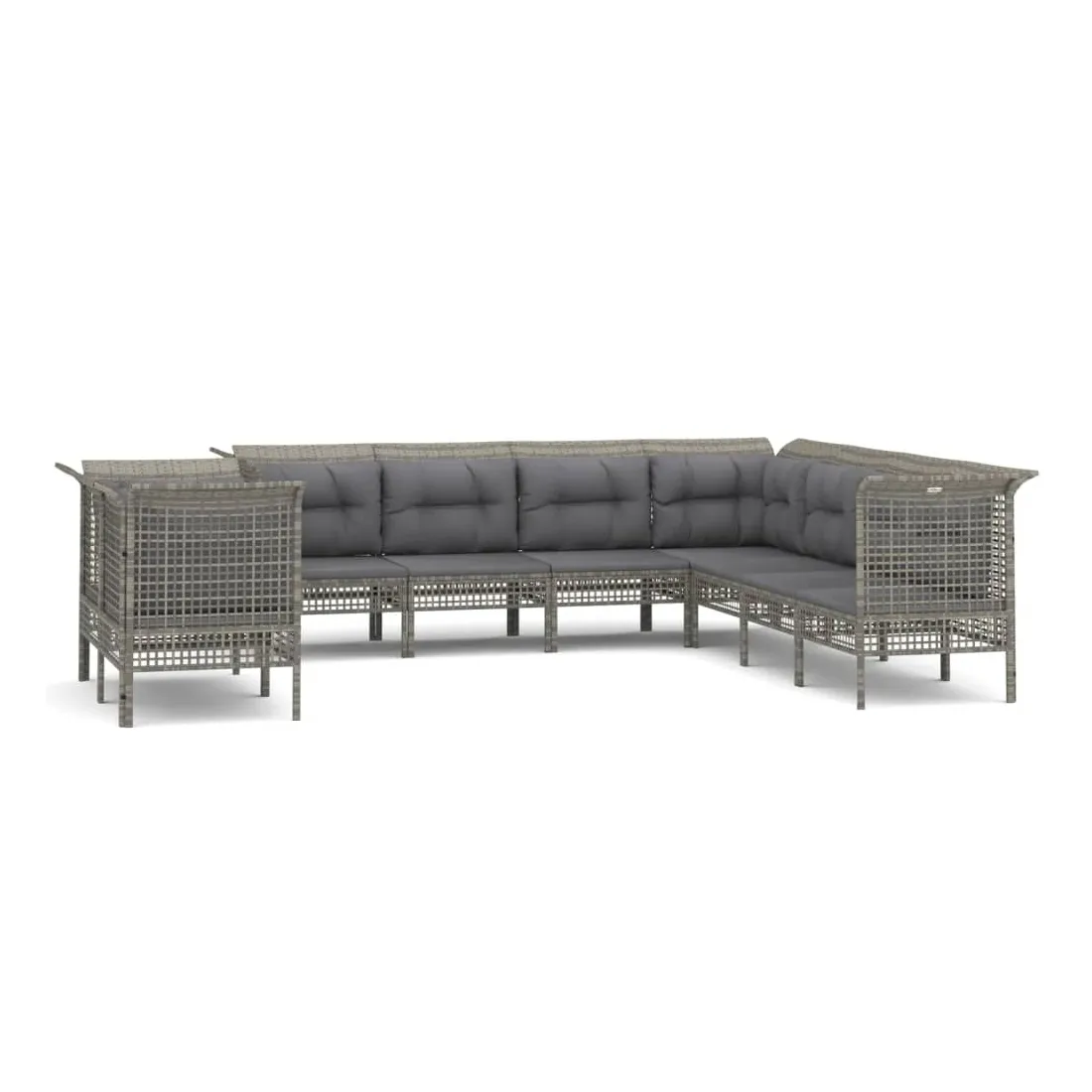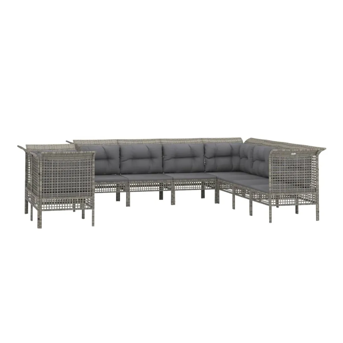 Salon de jardin 9 pcs avec coussins Gris Résine tressée