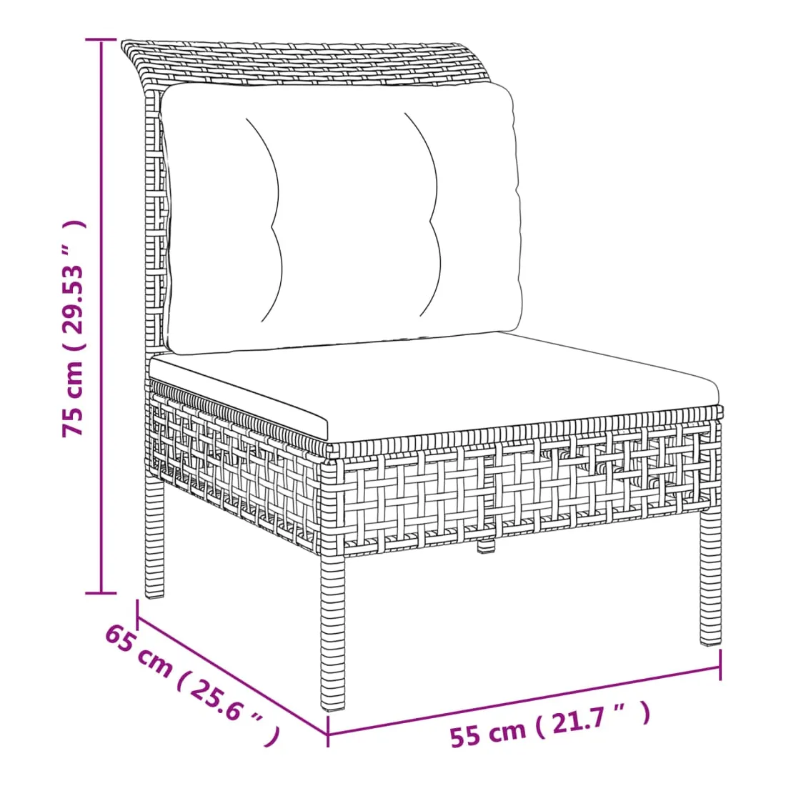 - Dimensions du coussin de siège : 55 x 55 x 3 cm (L x l x é)