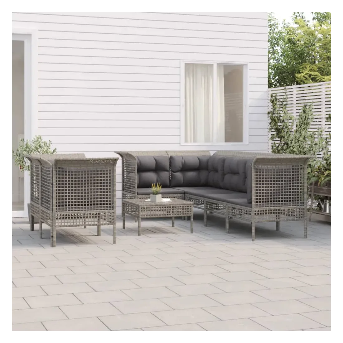 Profitez d'un moment de café confortable dans votre espace extérieur avec cet ensemble de salon de jardin ! C'est un complément parfait à votre jardin et à votre terrasse, créant une impression durable ! Matériau résistant aux intempéries : la résine tressée, également connue sous le nom de rotin poly, résiste aux intempéries et est facile à nettoyer. Elle reste belle à l'extérieur pendant une longue période. Elle offre une excellente qualité, commodité et un aspect esthétique.Cadre robuste : le cadre en acier enduit de poudre rend l'ensemble de salon d'extérieur robuste et stable pour une utilisation quotidienne à l'extérieur.Expérience d'assise confortable : les dossiers ajoutent un confort d'assise supplémentaire pour l'ensemble de salon de terrasse. De plus, les coussins bien rembourrés offrent du confort pendant votre temps d'assise.Conception modulaire : chaque article est flexible et facile à déplacer, vous pouvez donc la combiner avec d'autres segments modulaires dans la boutique en ligne pour créer vos propres configurations de salon de jardin ! Remarque :Pour que vos meubles d'extérieur restent beaux, nous vous recommandons de les protéger avec une housse imperméable.