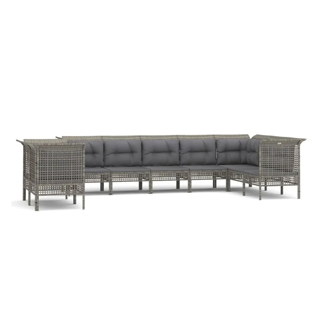 Salon de jardin 9 pcs avec coussins Gris Résine tressée