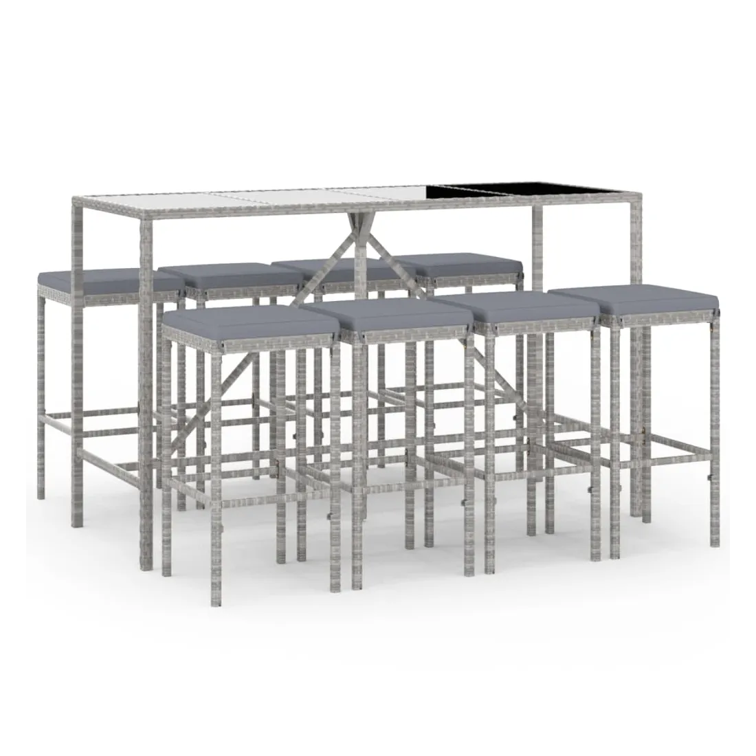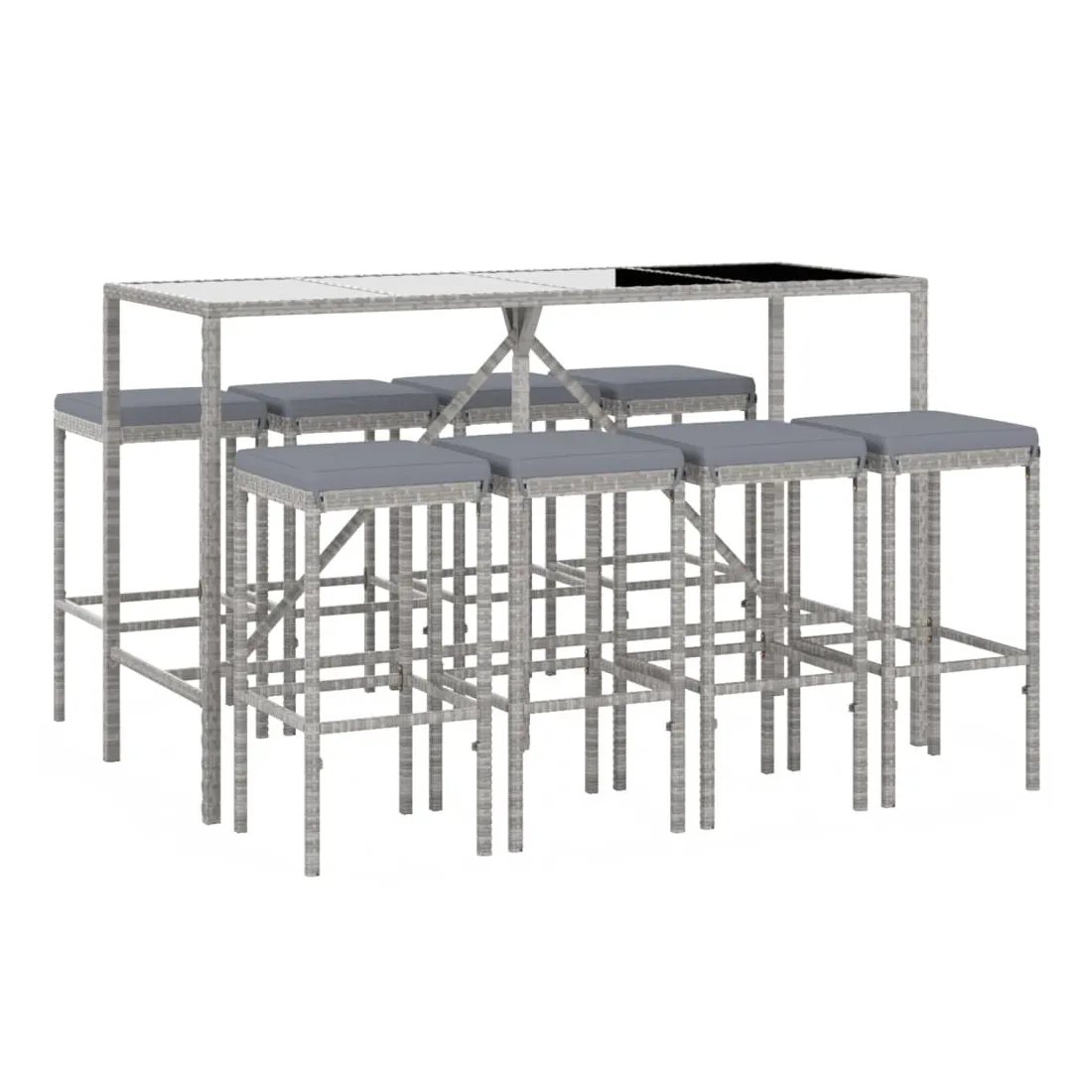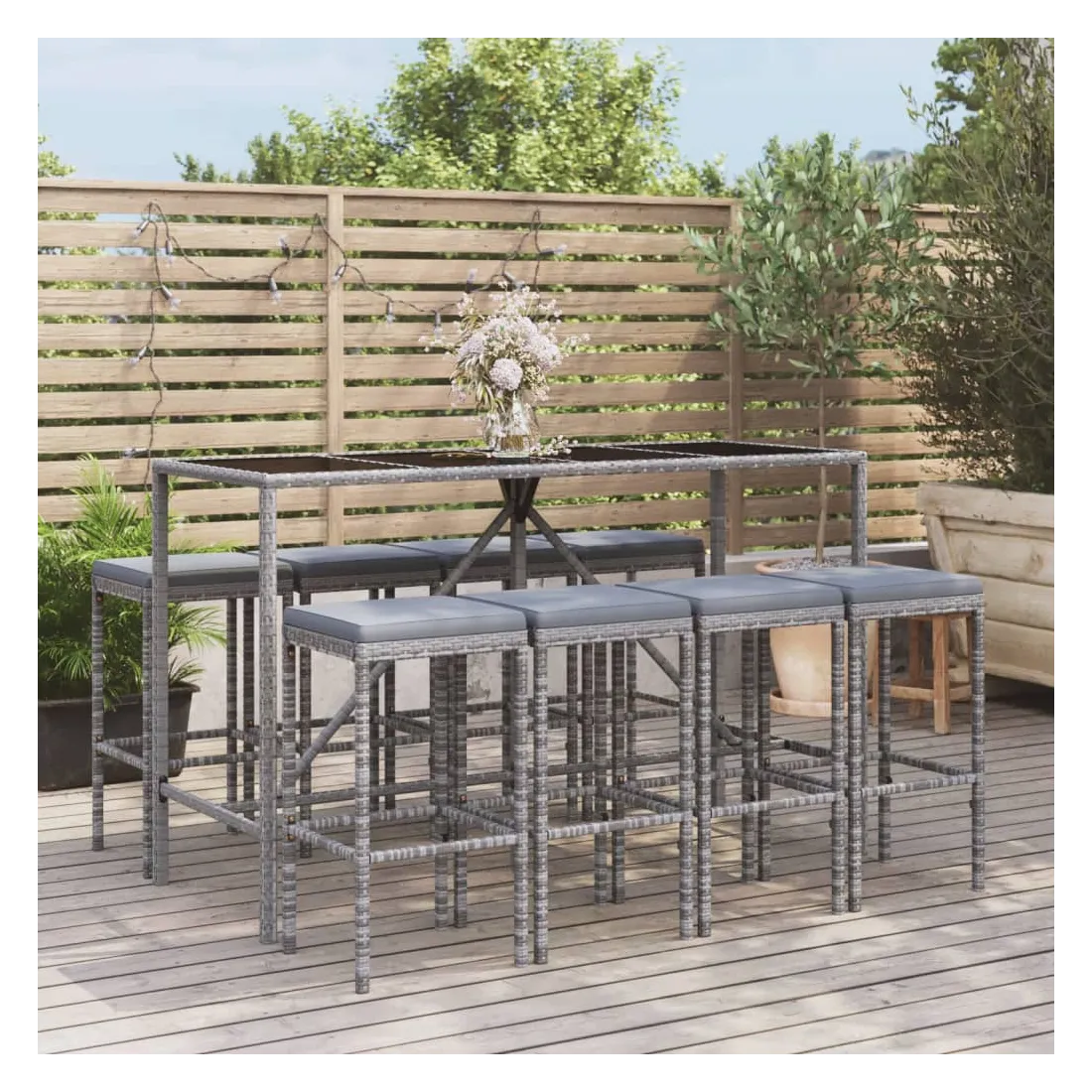 Cet ensemble de bar de jardin tendance, combinant à la fois style et fonctionnalité, est sûrement destiné à être la pièce maîtresse de votre jardin, terrasse et de tout autre espace de vie. Matériau résistant aux intempéries : la résine tressée, également connue sous le nom de rotin poly, résiste aux intempéries et est facile à nettoyer. Elle reste belle à l'extérieur pendant une longue période. Elle offre une excellente qualité, commodité et un aspect esthétique.Assise confortable : le tabouret de bar est conçu avec un repose-pieds intégré pour vous offrir une assise confortable. Le coussin de siège bien rembourré offre un confort ultime pendant votre temps assis.Dessus en verre trempé : le dessus est en verre trempé, ce qui le rend facile à nettoyer. De plus, il offre un excellent support pour placer vos boissons, collations et vos décorations préférées.Cadre robuste et stable : les cadres en acier enduit de poudre rendent l'ensemble de pub robuste et stable pour une utilisation quotidienne à l'extérieur.Applications larges : la table et le tabouret de bar, avec leur design remarquable, créent un aspect général agréable qui s'intègre sans effort dans n'importe quel décor. Bon à savoir :Pour faciliter au maximum le montage, chaque produit est livré avec des instructions.Remarque :Pour que vos meubles d'extérieur restent beaux, nous vous recommandons de les protéger avec une housse imperméable.