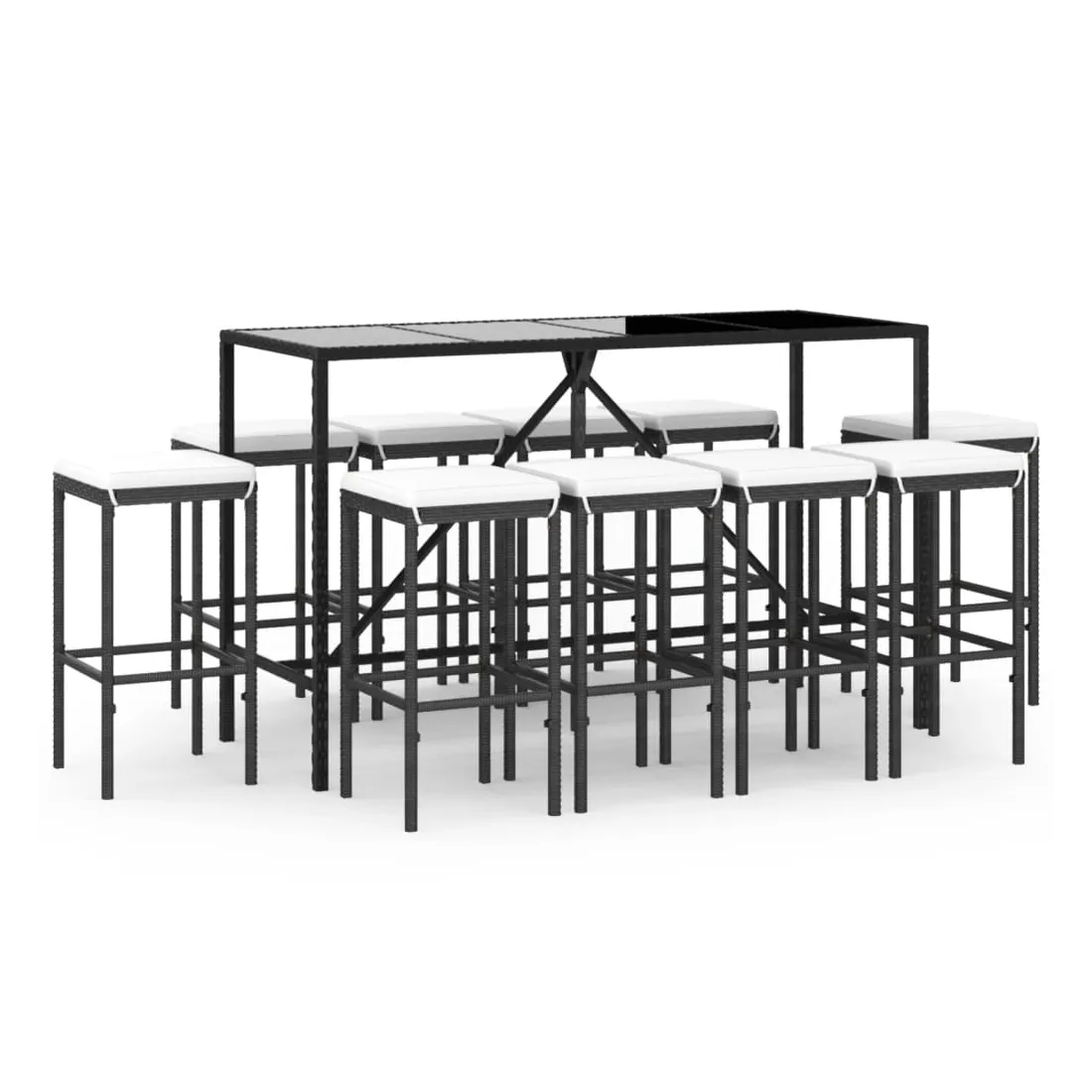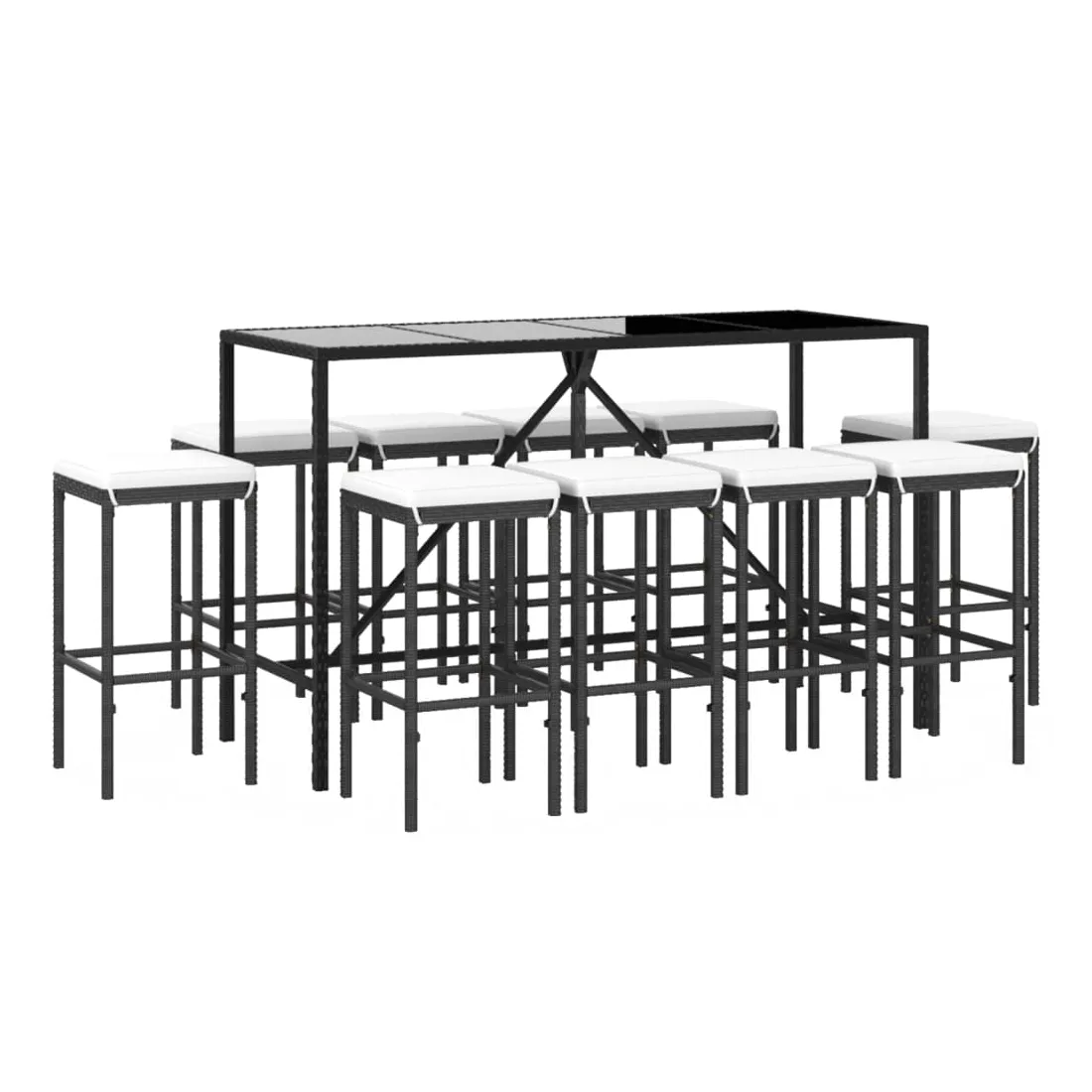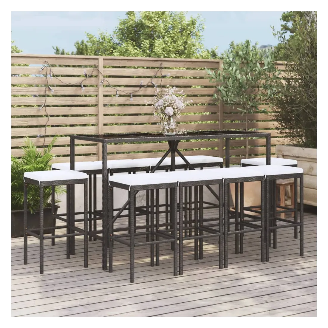 Cet ensemble de bar de jardin tendance, combinant à la fois style et fonctionnalité, est sûrement destiné à être la pièce maîtresse de votre jardin, terrasse et de tout autre espace de vie. Matériau résistant aux intempéries : la résine tressée, également connue sous le nom de rotin poly, résiste aux intempéries et est facile à nettoyer. Elle reste belle à l'extérieur pendant une longue période. Elle offre une excellente qualité, commodité et un aspect esthétique.Assise confortable : le tabouret de bar est conçu avec un repose-pieds intégré pour vous offrir une assise confortable. Le coussin de siège bien rembourré offre un confort ultime pendant votre temps assis.Dessus en verre trempé : le dessus est en verre trempé, ce qui le rend facile à nettoyer. De plus, il offre un excellent support pour placer vos boissons, collations et vos décorations préférées.Cadre robuste et stable : les cadres en acier enduit de poudre rendent l'ensemble de pub robuste et stable pour une utilisation quotidienne à l'extérieur.Applications larges : la table et le tabouret de bar, avec leur design remarquable, créent un aspect général agréable qui s'intègre sans effort dans n'importe quel décor. Bon à savoir :Pour faciliter au maximum le montage, chaque produit est livré avec des instructions.Remarque :Pour que vos meubles d'extérieur restent beaux, nous vous recommandons de les protéger avec une housse imperméable.