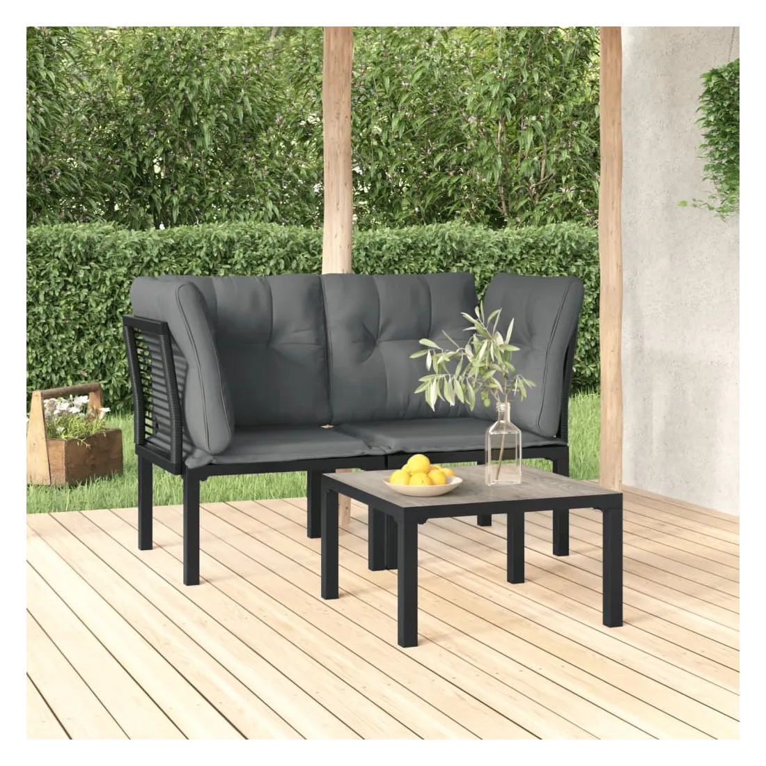 Cet ensemble de salon de jardin tendance, au design élégant et contemporain, est un choix parfait pour vous détendre dans votre jardin. Matériau résistant aux intempéries : la résine tressée, également connue sous le nom de rotin poly, résiste aux intempéries et est facile à nettoyer. Elle reste belle à l'extérieur pendant une longue période. Elle offre une excellente qualité, commodité et un aspect esthétique. Cadre robuste et stable : le cadre en acier enduit de poudre de l'ensemble de salon garantit la robustesse et la stabilité. Expérience d'assise confortable : le dossier ajoute un confort d'assise supplémentaire au canapé de jardin. De plus, les coussins bien rembourrés offrent du confort pendant votre temps d'assise.Conception modulaire : le salon d'extérieur est flexible et facile à déplacer, vous pouvez donc le combiner avec d'autres segments modulaires dans la boutique en ligne pour créer vos propres configurations d'ensemble de salon de jardin !Table pratique : le dessus robuste de la table basse de jardin est parfait pour placer des repas, des boissons et d'autres objets décoratifs. Bon à savoir :Pour faciliter au maximum le montage, chaque produit est livré avec des instructions.Remarque :Pour que vos meubles d'extérieur restent beaux, nous vous recommandons de les protéger avec une housse imperméable.