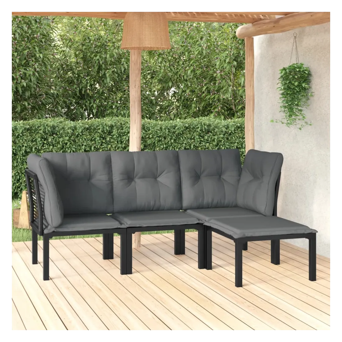 Cet ensemble de salon de jardin tendance, au design élégant et contemporain, est un choix parfait pour vous détendre dans votre jardin. Matériau résistant aux intempéries : la résine tressée, également connue sous le nom de rotin poly, résiste aux intempéries et est facile à nettoyer. Elle reste belle à l'extérieur pendant une longue période. Elle offre une excellente qualité, commodité et un aspect esthétique. Cadre robuste et stable : le cadre en acier enduit de poudre de l'ensemble de salon garantit la robustesse et la stabilité.Expérience d'assise confortable : le dossier ajoute un confort d'assise supplémentaire à la chaise. De plus, les coussins bien rembourrés vous permettent de vous asseoir confortablement.Conception modulaire : le salon d'extérieur est flexible et facile à déplacer, vous pouvez donc le combiner avec d'autres segments modulaires dans la boutique en ligne pour créer vos propres configurations d'ensemble de salon de jardin !Repose-pied pratique : le repose-pied est adapté pour reposer vos pieds pour vous détendre et vous offrir une assise supplémentaire dans votre espace extérieur. Bon à savoir :Pour faciliter au maximum le montage, chaque produit est livré avec des instructions.Remarque :Pour que vos meubles d'extérieur restent beaux, nous vous recommandons de les protéger avec une housse imperméable.
