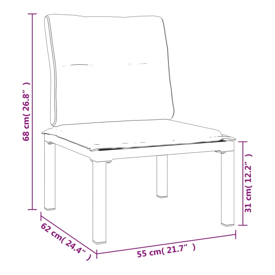 - Dimensions du coussin de siège : 55 x 55 x 3,5 cm (L x l x é)