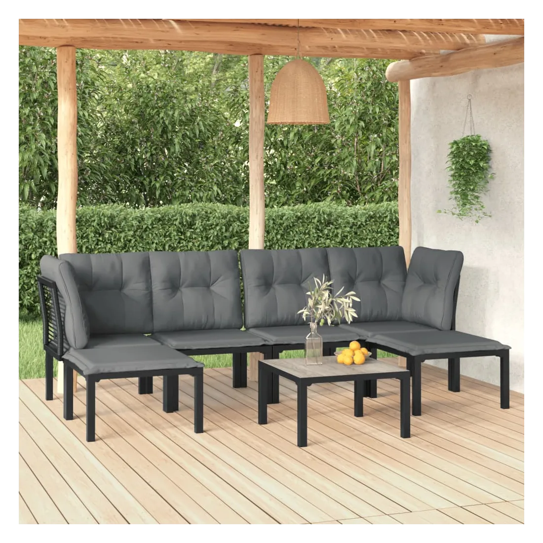 Cet ensemble de salon de jardin tendance, au design élégant et contemporain, est un choix parfait pour vous détendre dans votre jardin. Matériau résistant aux intempéries : la résine tressée, également connue sous le nom de rotin poly, résiste aux intempéries et est facile à nettoyer. Elle reste belle à l'extérieur pendant une longue période. Elle offre une excellente qualité, commodité et un aspect esthétique. Cadre robuste et stable : le cadre en acier enduit de poudre de l'ensemble de salon garantit la robustesse et la stabilité.Expérience d'assise confortable : le dossier ajoute un confort d'assise supplémentaire à la chaise. De plus, les coussins bien rembourrés vous permettent de vous asseoir confortablement.Conception modulaire : le salon d'extérieur est flexible et facile à déplacer, vous pouvez donc le combiner avec d'autres segments modulaires dans la boutique en ligne pour créer vos propres configurations d'ensemble de salon de jardin !Table pratique : le dessus robuste de la table basse de jardin est parfait pour placer des repas, des boissons et d'autres objets décoratifs.Repose-pied pratique : le repose-pied est adapté pour reposer vos pieds pour vous détendre et vous offrir une assise supplémentaire dans votre espace extérieur. Bon à savoir :Pour faciliter au maximum le montage, chaque produit est livré avec des instructions.Remarque :Pour que vos meubles d'extérieur restent beaux, nous vous recommandons de les protéger avec une housse imperméable.