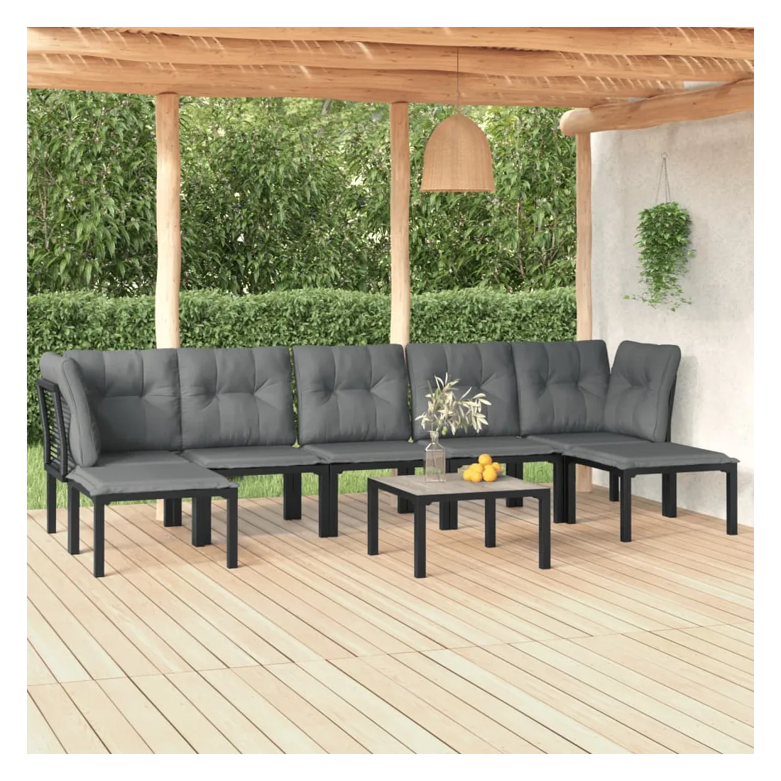 Cet ensemble de salon de jardin tendance, au design élégant et contemporain, est un choix parfait pour vous détendre dans votre jardin. Matériau résistant aux intempéries : la résine tressée, également connue sous le nom de rotin poly, résiste aux intempéries et est facile à nettoyer. Elle reste belle à l'extérieur pendant une longue période. Elle offre une excellente qualité, commodité et un aspect esthétique. Cadre robuste et stable : le cadre en acier enduit de poudre de l'ensemble de salon garantit la robustesse et la stabilité.Expérience d'assise confortable : le dossier ajoute un confort d'assise supplémentaire à la chaise. De plus, les coussins bien rembourrés vous permettent de vous asseoir confortablement.Conception modulaire : le salon d'extérieur est flexible et facile à déplacer, vous pouvez donc le combiner avec d'autres segments modulaires dans la boutique en ligne pour créer vos propres configurations d'ensemble de salon de jardin !Table pratique : le dessus robuste de la table basse de jardin est parfait pour placer des repas, des boissons et d'autres objets décoratifs.Repose-pied pratique : le repose-pied est adapté pour reposer vos pieds pour vous détendre et vous offrir une assise supplémentaire dans votre espace extérieur. Bon à savoir :Pour faciliter au maximum le montage, chaque produit est livré avec des instructions.Remarque :Pour que vos meubles d'extérieur restent beaux, nous vous recommandons de les protéger avec une housse imperméable.