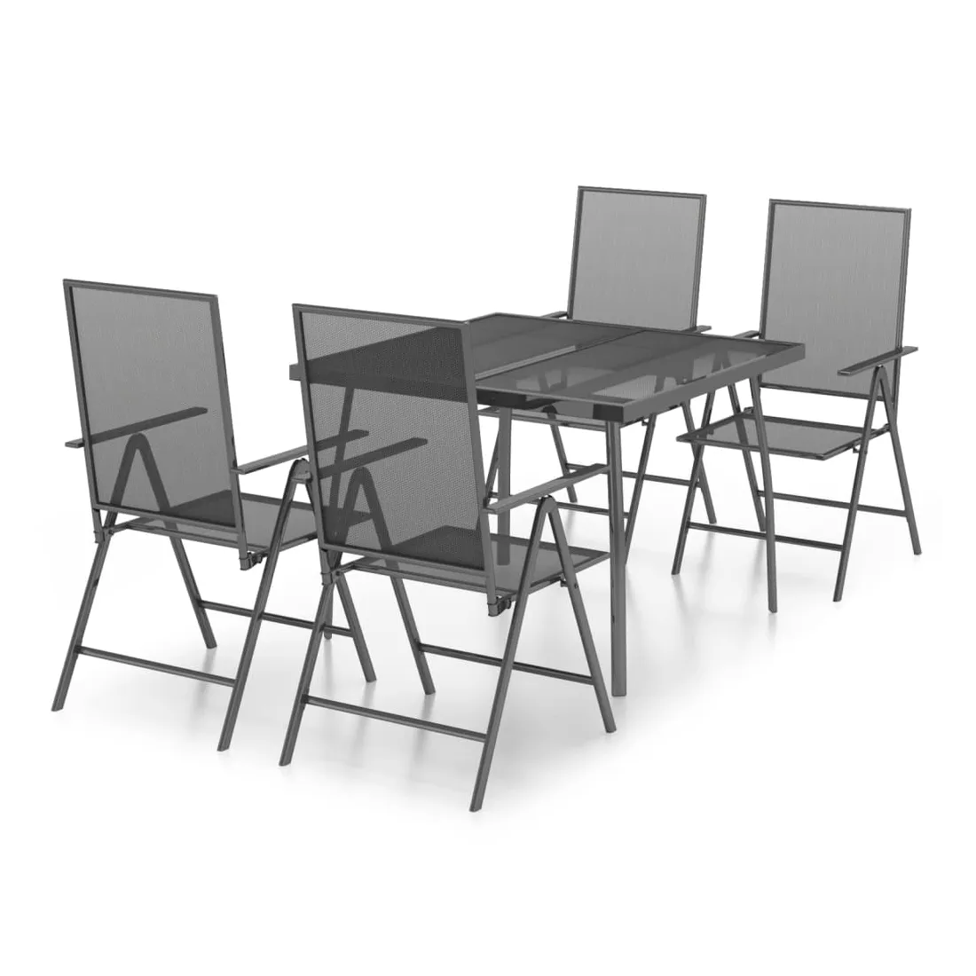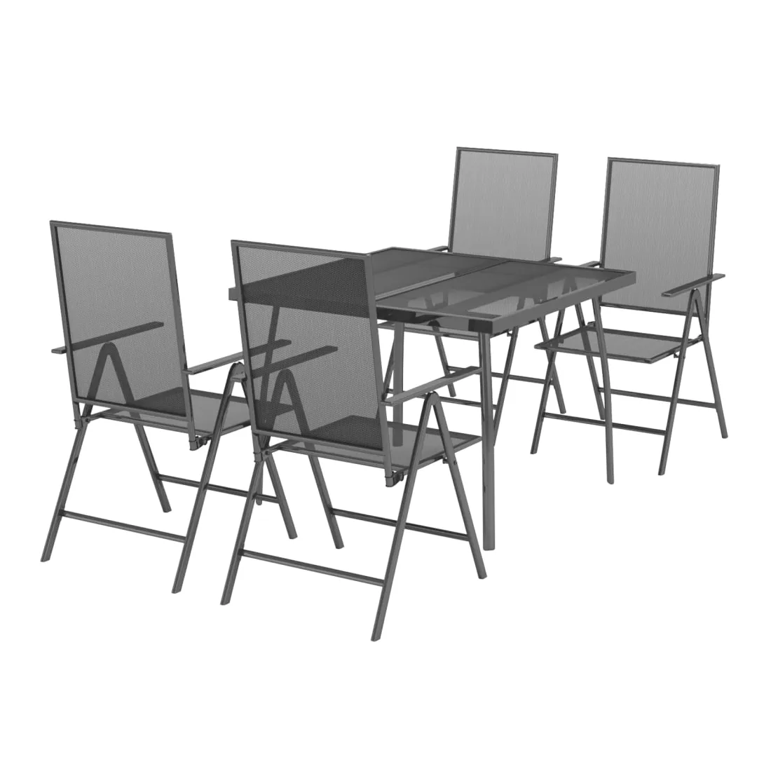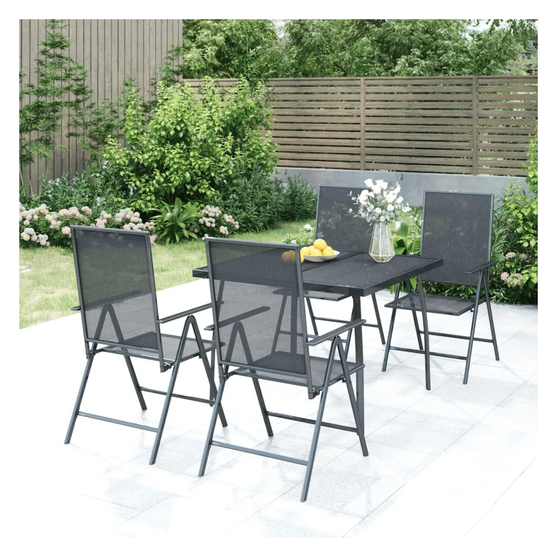 Cet ensemble de salle à manger de jardin tendance, au design élégant et contemporain, est un choix parfait pour vous détendre dans votre jardin. Matériau robuste : l'acier est un matériau exceptionnellement dur et solide. Il offre robustesse et stabilité. Le revêtement par poudre et le revêtement électronique de l'acier créent une couche protectrice contre l'usure et la corrosion.Cadre stable : le cadre en acier enduit de poudre et e-coated assure la robustesse et la stabilité de l'ensemble de salle à manger.Fonction réglable et pliable : les dossiers des chaises de salle à manger sont réglables en 6 positions selon votre confort. Vous pouvez les replier pour économiser de l'espace lorsqu'ils ne sont pas utilisés.Table pratique : le dessus robuste de la table à manger est parfait pour placer des repas, des boissons et d'autres objets décoratifs.Design en maille : l'ensemble de salle à manger d'extérieur avec un design en maille a un aspect simple et intemporel et convient aux balcons, porches, jardins, terrasses, etc. Remarque :Pour que vos meubles d'extérieur restent beaux, nous vous recommandons de les protéger avec une housse imperméable.
