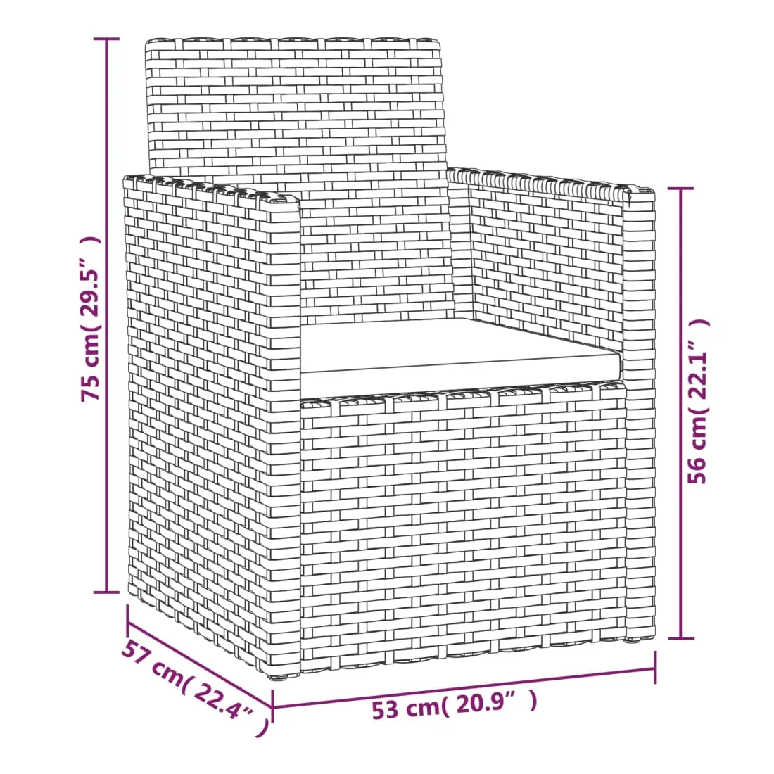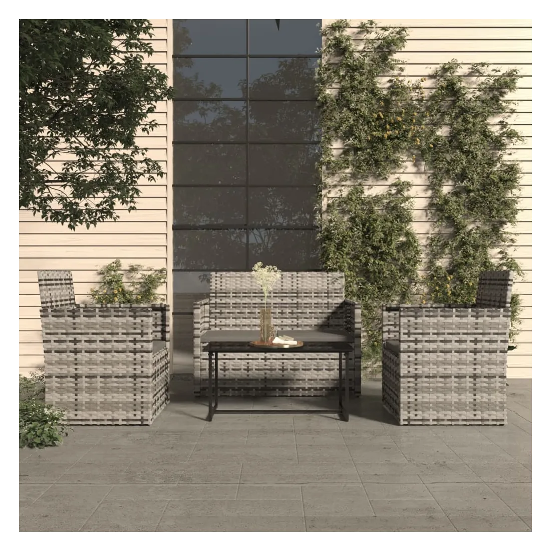 vidaXLCet ensemble de salon d'extérieur tendance, au design élégant et contemporain, est un excellent choix pour manger ou vous détendre dans votre jardin. Matériau durable : le polyéthylène (PE) est la matière plastique la plus utilisée. Son utilisation dans les meubles est pratique car il est résistant aux UV, léger et facile à entretenir.Table exquise : la table élégante est un excellent endroit pour placer des boissons, de la nourriture et des décorations. Elle est d'une belle apparence et facile à nettoyer. Elle est un supplément parfait à votre jardin et à votre terrasse, créant une impression durable !Expérience de siège confortable : des coussins supplémentaires sont inclus pour votre confort. Remarque :Afin de prolonger la durée de vie de votre mobilier d'extérieur, nous vous recommandons de le protéger avec une housse imperméable.Chaque produit est livré avec un manuel de montage dans la boîte pour un montage facile.