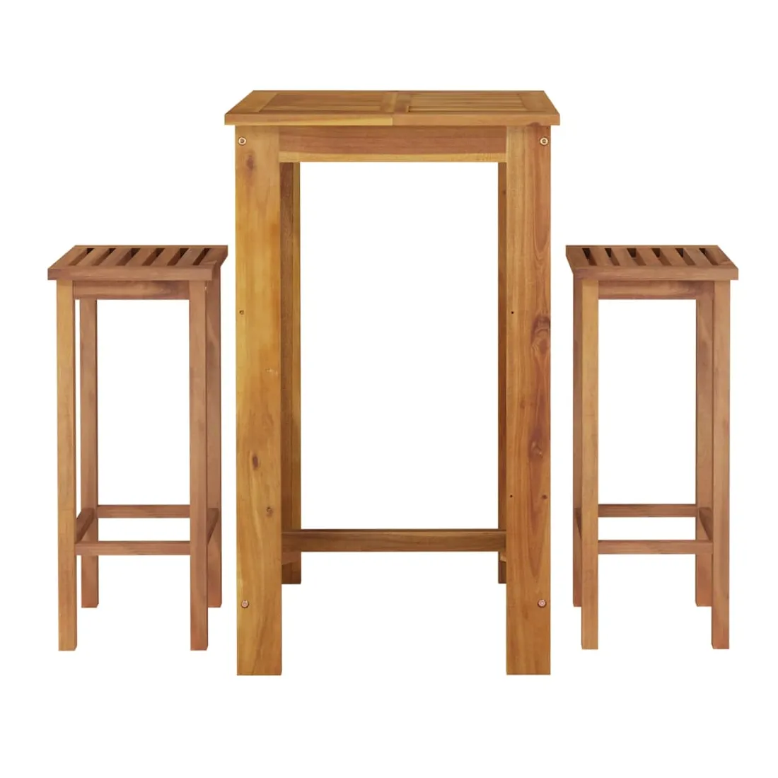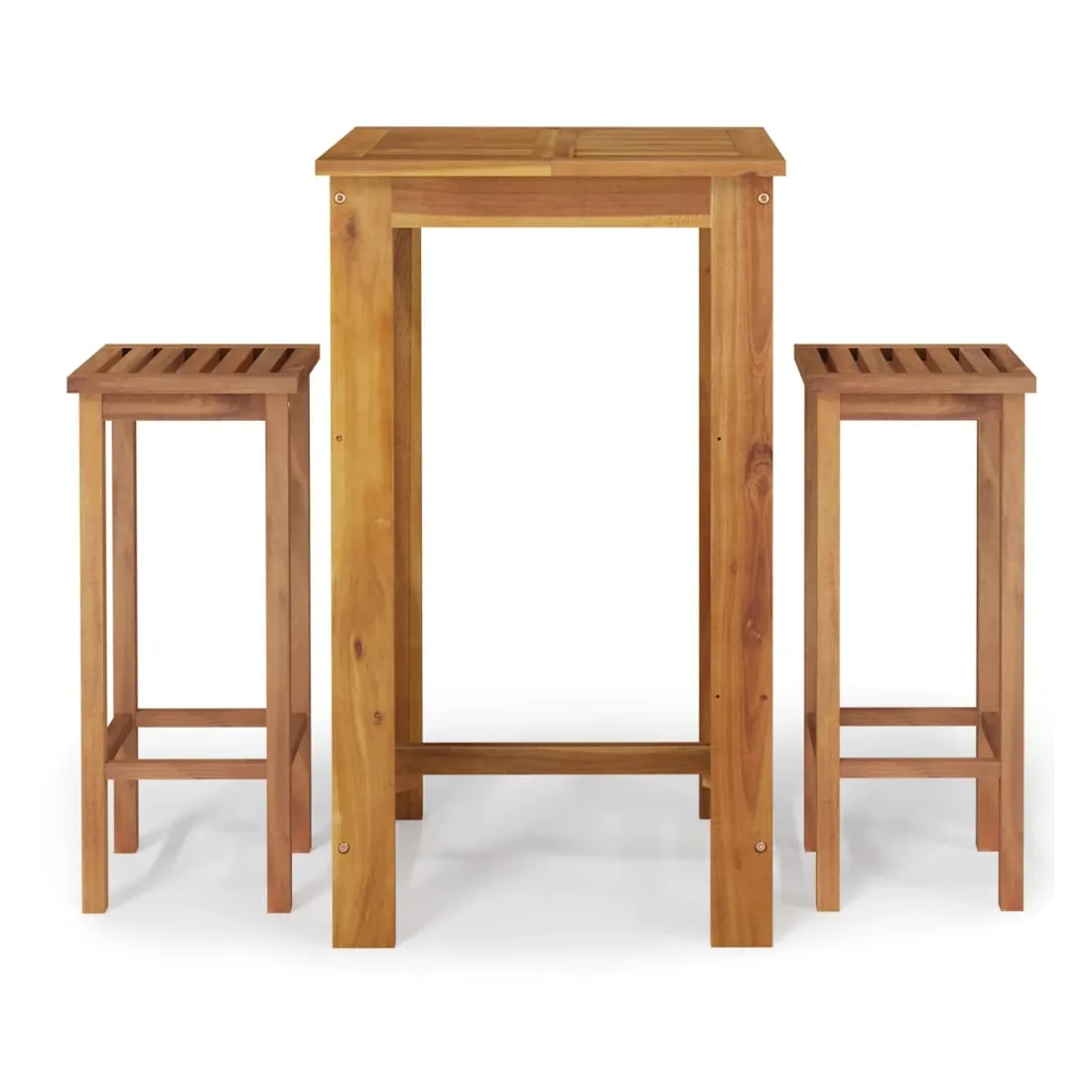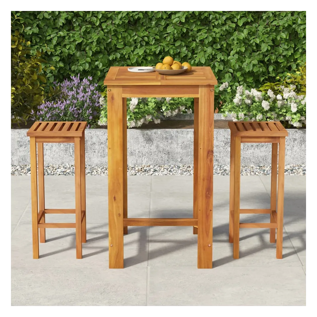 Cet ensemble de bar de jardin en bois, au design élégant et contemporain, sera un excellent choix pour manger ou vous détendre dans le jardin. Bois d'acacia massif : le bois d'acacia massif est un matériau naturel magnifique. Le bois d'acacia est un bois dur tropical, qui est dense, robuste et durable. Fabriqué en bois d'acacia massif, cet ensemble de bar convient à une utilisation intérieure et extérieure. Dessus de table robuste : cette table de bar vous offre un dessus de table solide. Vous pouvez placer vos collations, boissons et n'importe laquelle de vos décorations préférées. Expérience d'assise confortable : les repose-pieds offrent un confort d'assise supplémentaire.Surface facile à nettoyer : la surface à finition à l'huile rend ce mobilier de bar d'extérieur facile à nettoyer avec un chiffon humide. Remarque :Chaque produit est livré avec un manuel de montage dans la boîte pour un montage facile. Afin de prolonger la durée de vie de votre mobilier d'extérieur, nous vous recommandons de le protéger avec une housse imperméable.