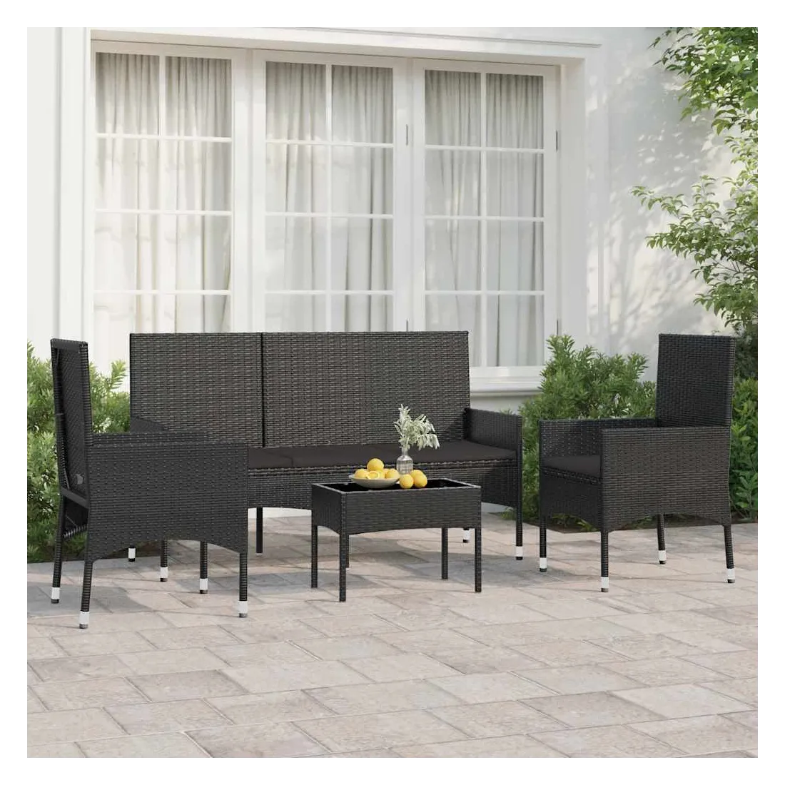 Profitez d'un moment de café confortable dans votre espace extérieur avec cet ensemble de salon de jardin ! C'est un complément parfait à votre jardin et à votre terrasse, créant une impression durable ! Matériau haut de gamme : la résine tressée est un matériau de résistance exceptionnelle et durable dans différentes conditions météorologiques.Coussins moelleux : les coussins épais et amovibles du salon de jardin sont inclus pour offrir le plus grand confort d'assise.Accoudoirs et dossier confortables : vos bras et votre dos peuvent se reposer confortablement grâce aux accoudoirs et au dossier.Dessus robuste : le dessus de table robuste de cette table basse de jardin vous offre de l'espace pour placer des collations, des paniers de fruits, des objets décoratifs, ainsi que divers autres articles essentiels. Bon à savoir :Pour faciliter au maximum le montage, chaque produit est livré avec des instructions. Remarque :Pour que vos meubles d'extérieur restent beaux, nous vous recommandons de les protéger avec une housse imperméable.