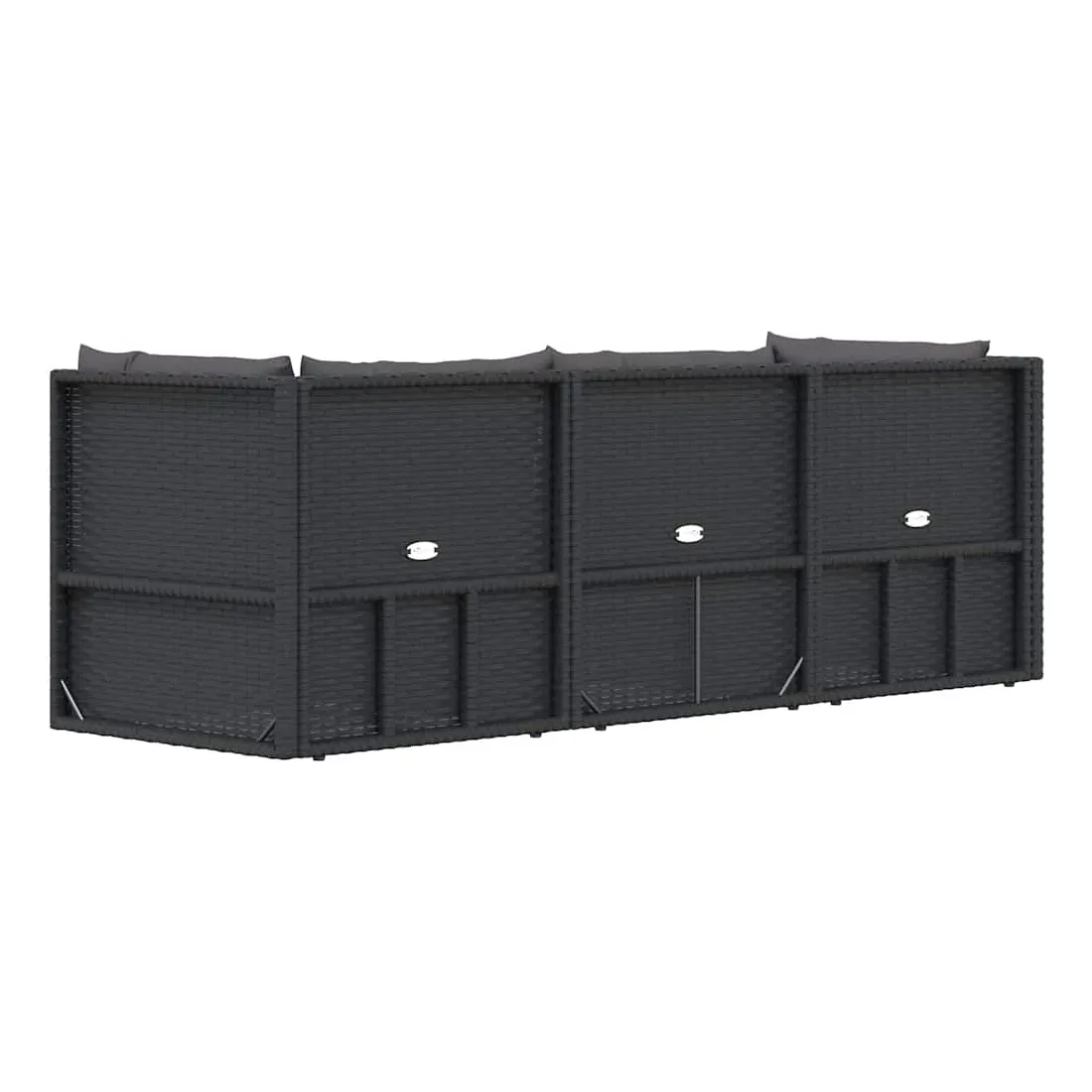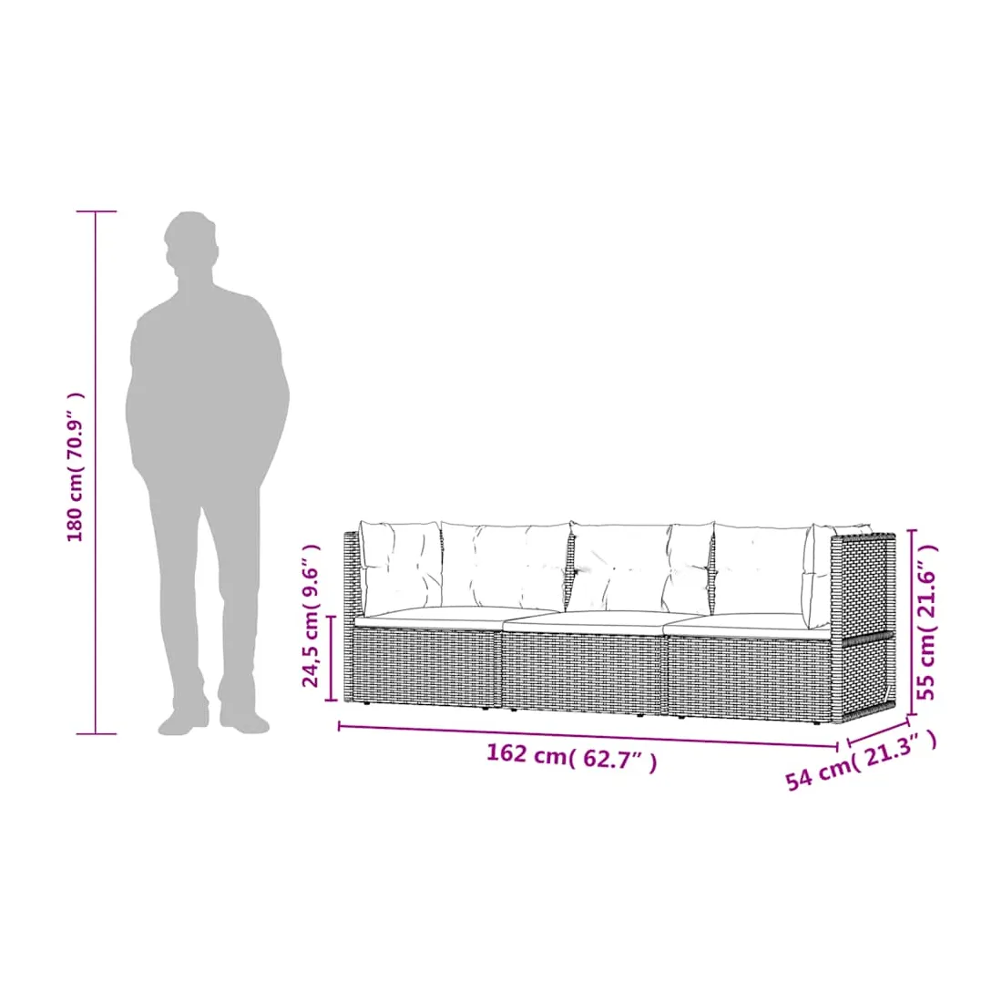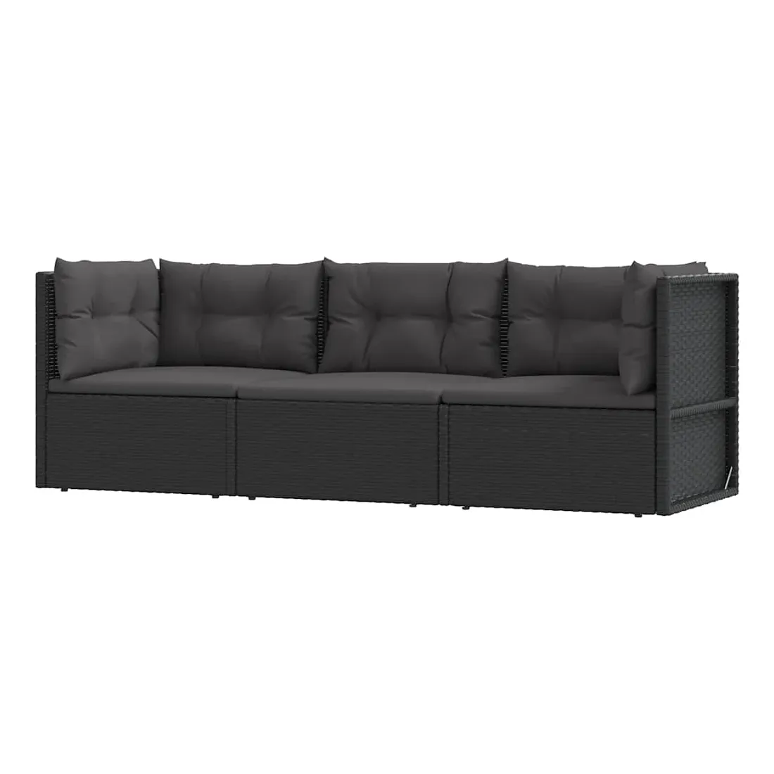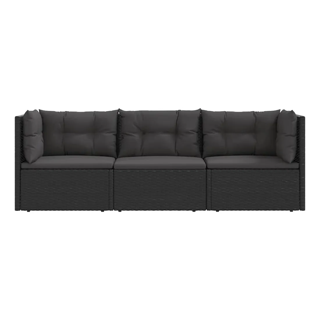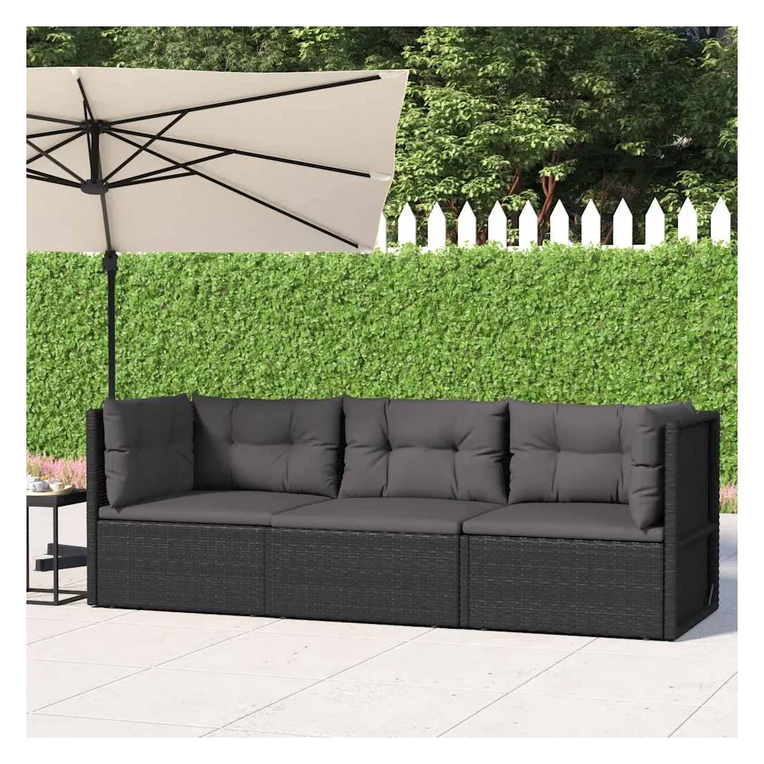 Salon de jardin 3 pcs avec coussins Noir Résine tressée