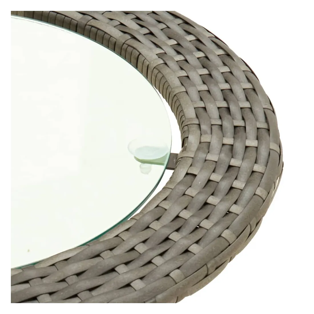 - Matériau : acier enduit de poudre, verre trempé, rotin PE