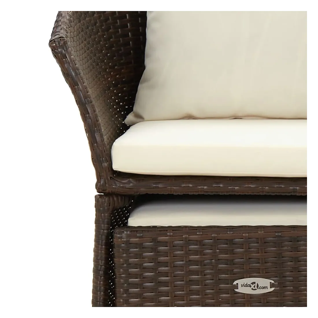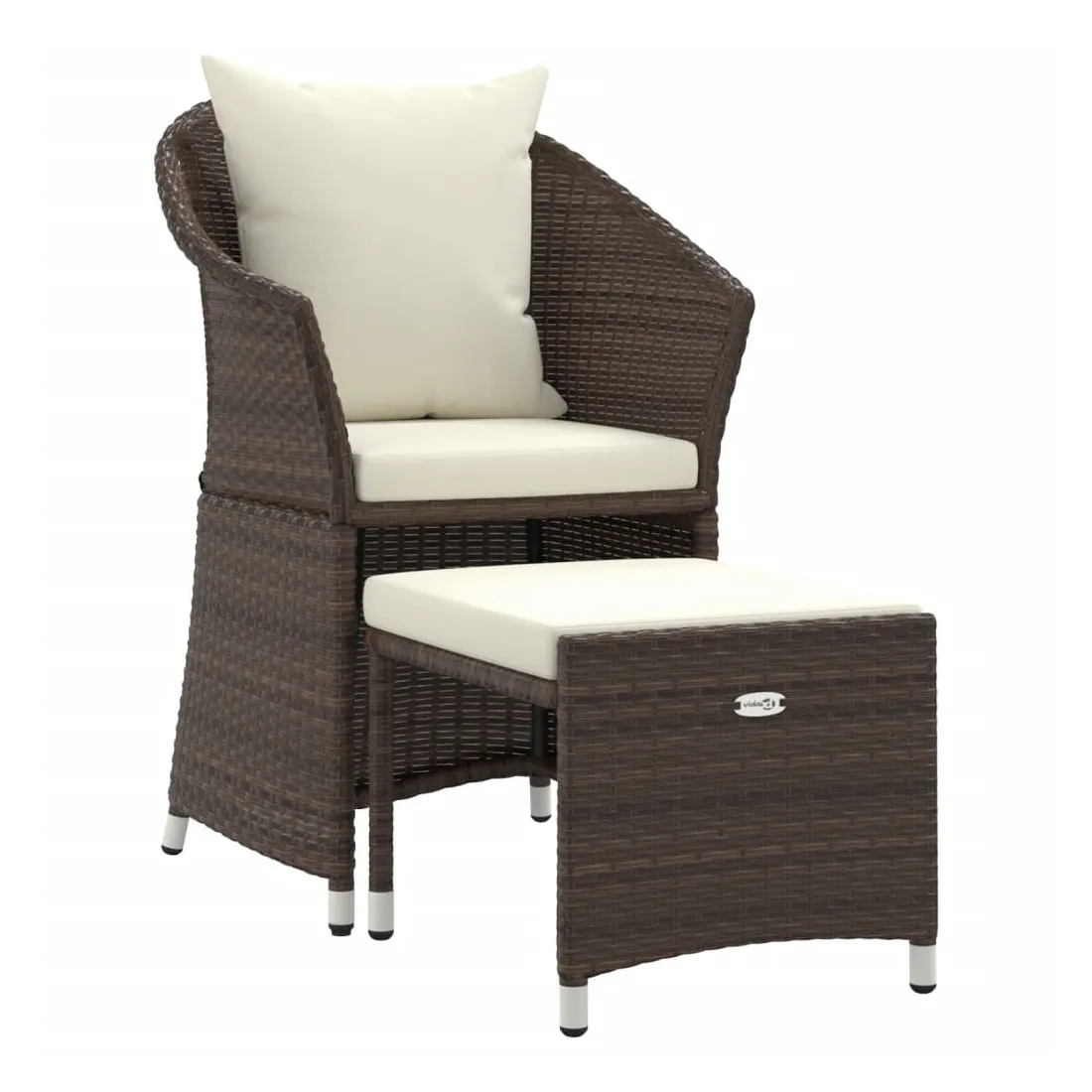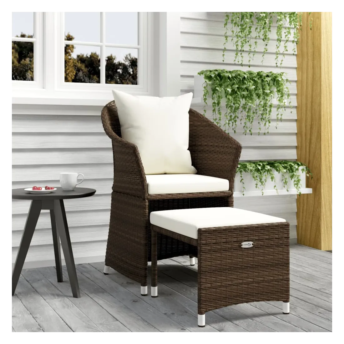 Profitez d'un moment agréable dans votre espace extérieur avec cet ensemble de salon de jardin ! C'est un complément parfait à votre jardin et à votre terrasse, créant une impression durable ! Matériau haut de gamme : la résine tressée est un matériau de résistance exceptionnelle et durable dans différentes conditions météorologiques.Cadre en acier : le cadre en acier assure la robustesse et la stabilité de l'ensemble de salon extérieur.Coussins moelleux : les coussins épais et amovibles du salon de jardin sont inclus pour offrir le plus grand confort d'assise.Accoudoirs et dossier confortables : le dossier et les accoudoirs ronds permettent à vos bras et à votre dos de se reposer confortablement.Tabouret pratique : vous pouvez vous détendre et y mettre vos pieds grâce au tabouret inclus. Vous pouvez également placer le tabouret n'importe où, selon vos préférences. Remarque :Chaque produit est livré avec un manuel de montage dans la boîte pour un montage facile.Afin de prolonger la durée de vie de votre mobilier d'extérieur, nous vous recommandons de le protéger avec une housse imperméable.