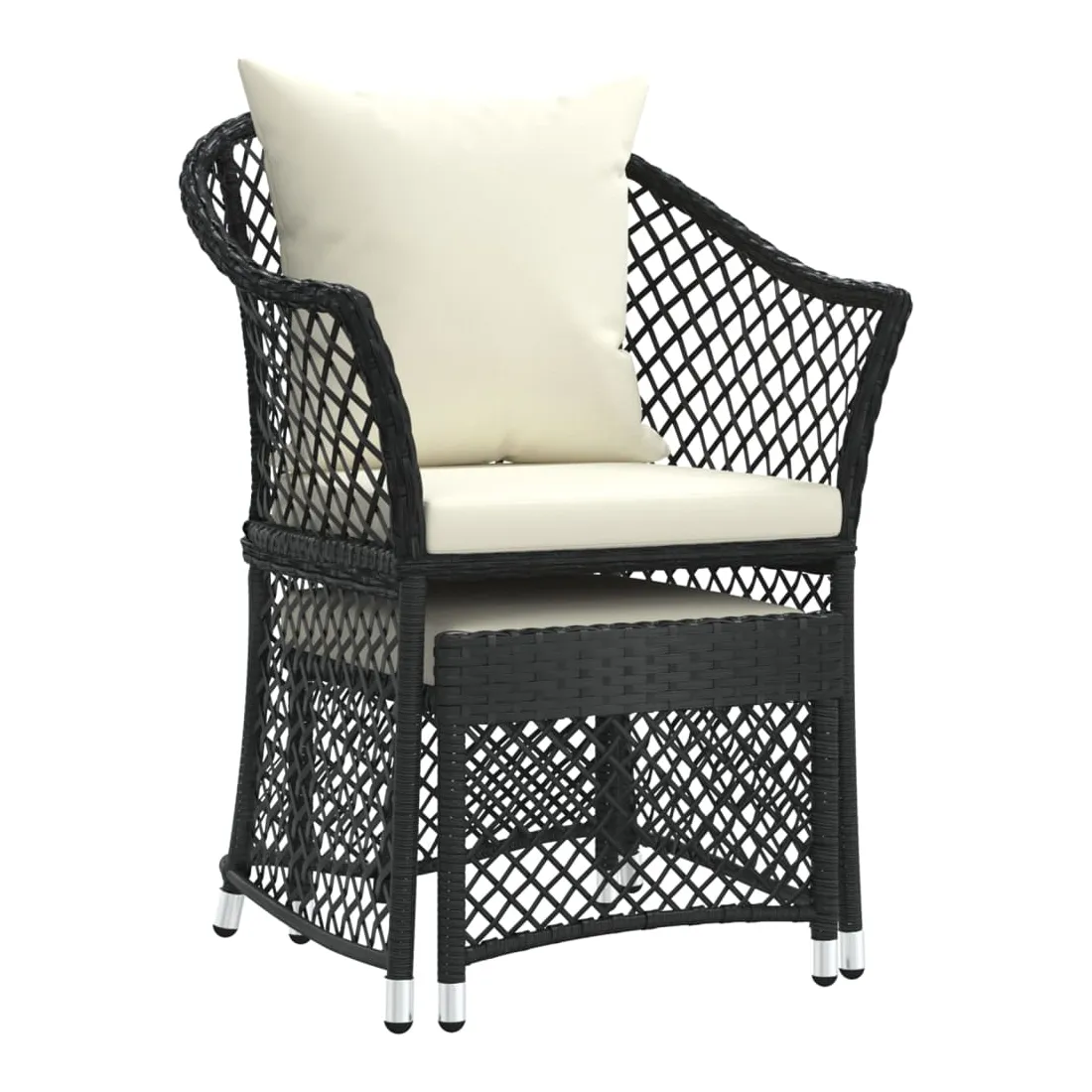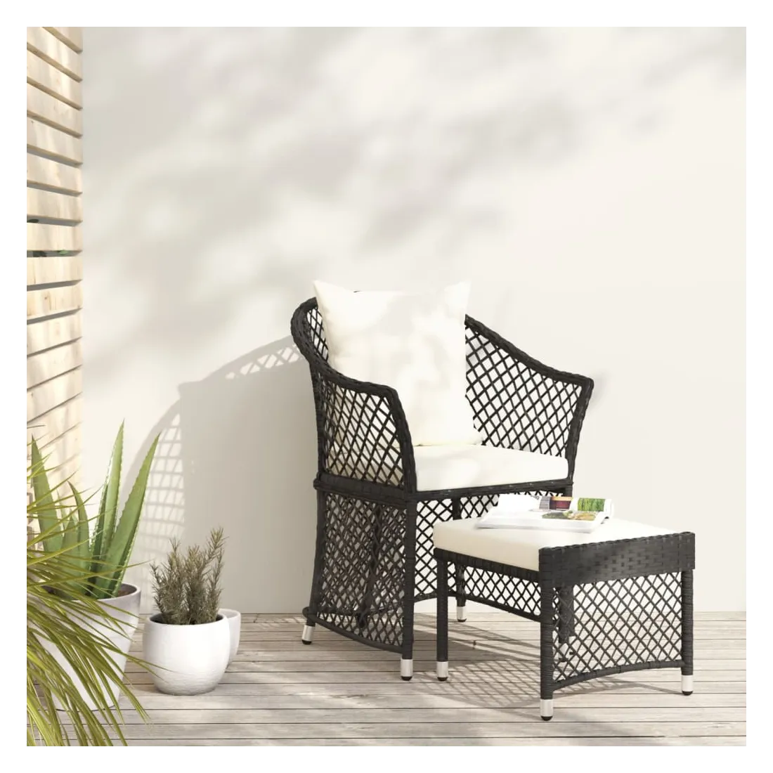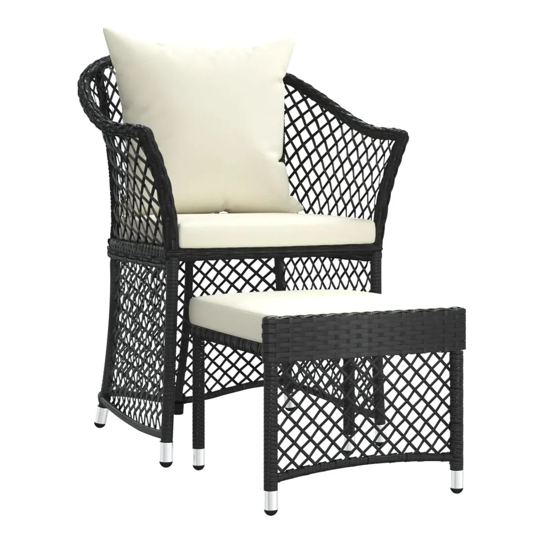 Profitez d'un moment agréable dans votre espace extérieur avec cet ensemble de salon de jardin ! C'est un complément parfait à votre jardin et à votre terrasse, créant une impression durable ! Matériau haut de gamme : la résine tressée est un matériau de résistance exceptionnelle et durable dans différentes conditions météorologiques.Cadre en acier : le cadre en acier assure la robustesse et la stabilité de l'ensemble de salon extérieur.Coussins moelleux : les coussins épais et amovibles du salon de jardin sont inclus pour offrir le plus grand confort d'assise.Accoudoirs et dossier confortables : le dossier et les accoudoirs ronds permettent à vos bras et à votre dos de se reposer confortablement.Tabouret pratique : vous pouvez vous détendre et y mettre vos pieds grâce au tabouret inclus. Vous pouvez également placer le tabouret n'importe où, selon vos préférences. Bon à savoir :Pour faciliter au maximum le montage, chaque produit est livré avec des instructions. Remarque :Pour que vos meubles d'extérieur restent beaux, nous vous recommandons de les protéger avec une housse imperméable.