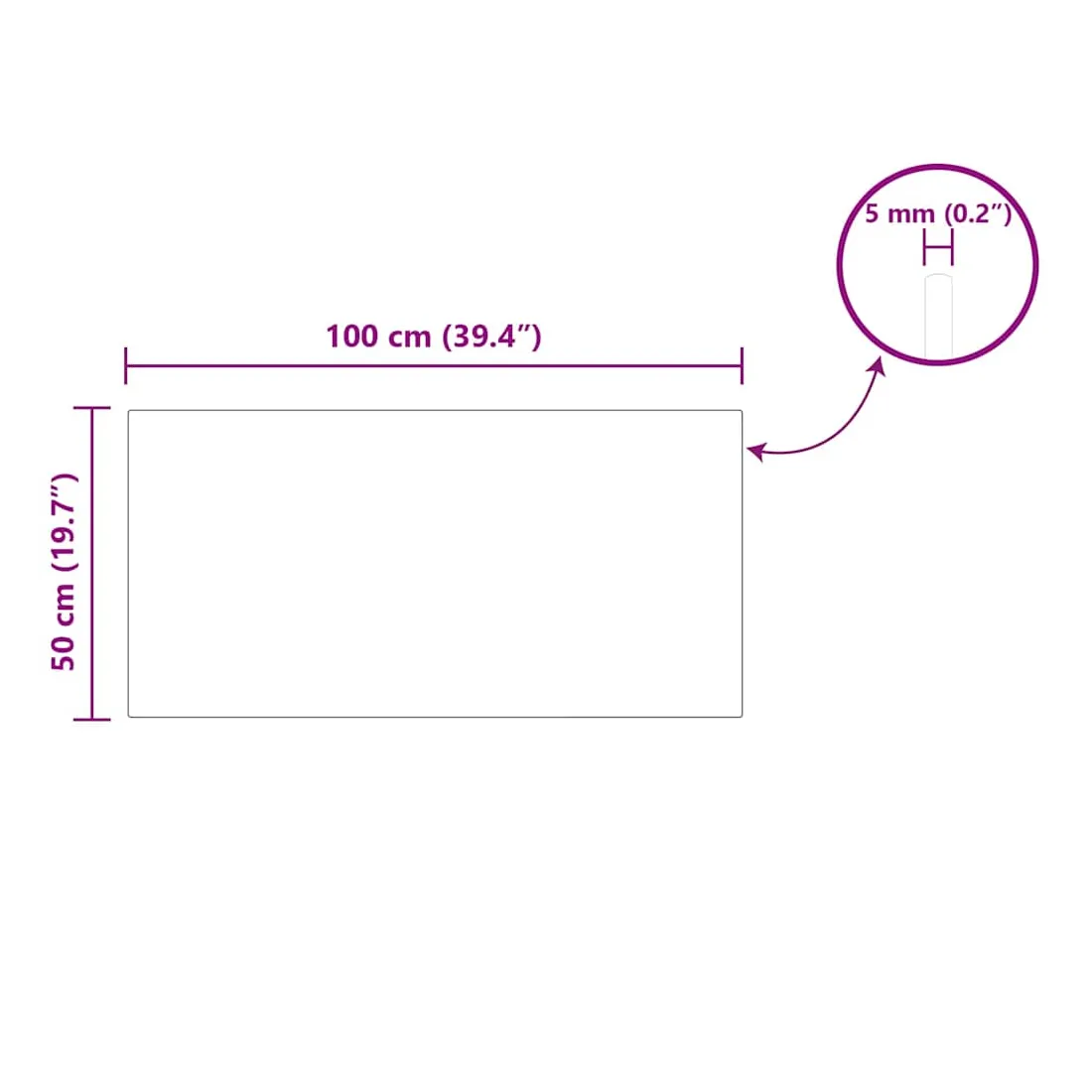 - 100 x 50 x 0.5 cm
