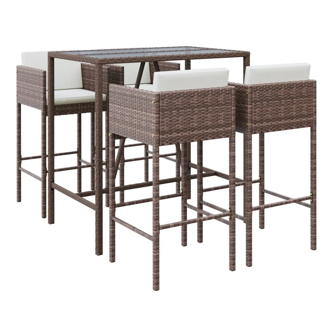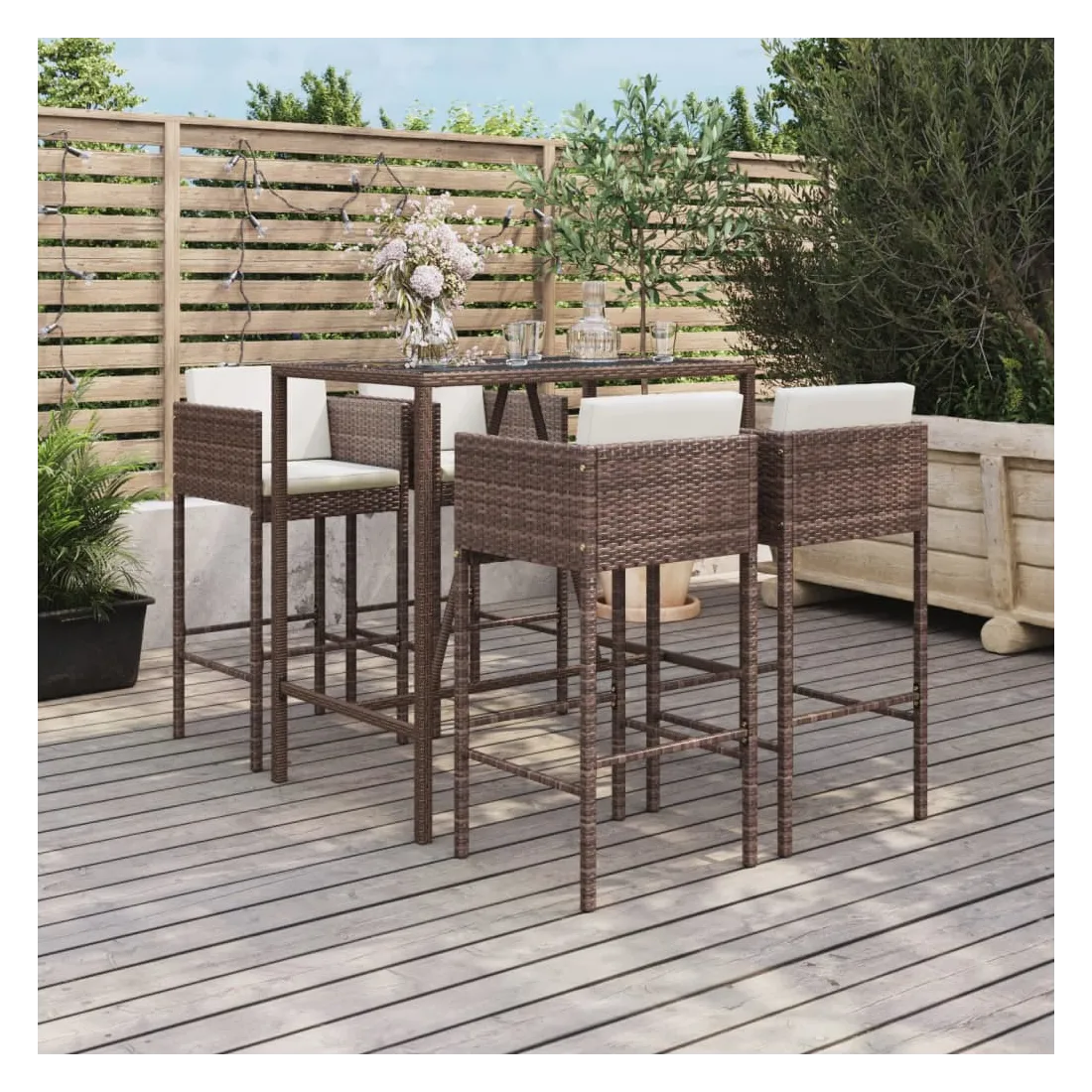 Cet ensemble de bar de jardin tendance, combinant à la fois style et fonctionnalité, est sûrement destiné à être la pièce maîtresse de votre jardin, terrasse et de tout autre espace de vie. Matériau résistant aux intempéries : la résine tressée, également connue sous le nom de rotin poly, résiste aux intempéries et est facile à nettoyer. Elle reste belle à l'extérieur pendant une longue période. Elle offre une excellente qualité, commodité et un aspect esthétique.Siège confortable : le tabouret de bar est conçu avec un repose-pied, un dossier et des accoudoirs pour vous offrir une expérience d'assise confortable. Les coussins souples du siège et du dossier ajoutent encore au confort.Dessus en verre trempé : le dessus est en verre trempé, ce qui le rend facile à nettoyer. De plus, il offre un excellent support pour placer vos boissons, collations et vos décorations préférées.Cadre robuste et stable : les cadres en acier enduit de poudre rendent l'ensemble de pub robuste et stable pour une utilisation quotidienne à l'extérieur.Applications larges : la table et les tabourets de bar, avec leur design remarquable, créent un aspect général agréable qui s'intègre sans effort dans n'importe quel décor. Bon à savoir :Pour que vos meubles d'extérieur restent beaux, nous vous recommandons de les protéger avec une housse imperméable.