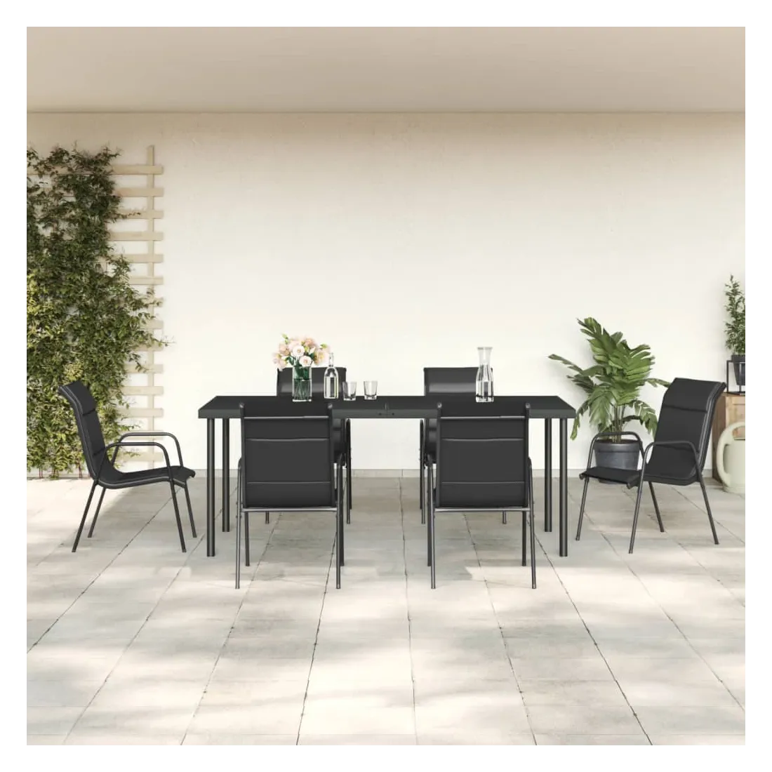 Profitez d'un bon repas ou d'un thé l'après-midi dans votre espace extérieur avec cet ensemble de salle à manger de jardin ! Ayant un design élégant, il deviendra le point central de votre jardin et de votre terrasse ! Cadre stable : les fauteuils et la table ont une construction en acier revêtu de poudre, ce qui les rend robustes et stables.Matériau durable : grâce au tissu textilène résistant avec rembourrage, ces chaises d'extérieur sont très confortables, résistantes aux intempéries et faciles à nettoyer.Dessus de table robustes : le dessus de table est en verre trempé, ce qui le rend facile à nettoyer. De plus, le dessus de table est parfait pour placer des collations, des boissons, des vases, des bols de fruits ou d'autres objets décoratifs.Expérience d'assise confortable : conçu avec un dossier et des accoudoirs incurvés, le fauteuil de jardin a une forme plus ergonomique pour un maximum de confort. Bon à savoir :Pour que vos meubles d'extérieur restent beaux, nous vous recommandons de les protéger avec une housse imperméable.