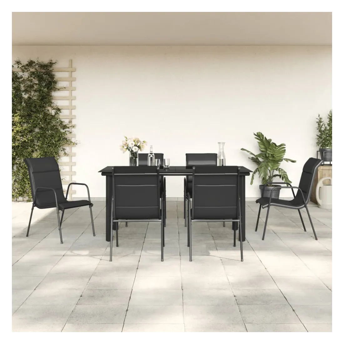 Profitez d'un bon repas ou d'un thé l'après-midi dans votre espace extérieur avec cet ensemble de salle à manger de jardin ! Ayant un design élégant, il deviendra le point central de votre jardin et de votre terrasse ! Cadre stable : les fauteuils et la table ont une construction en acier revêtu de poudre, ce qui les rend robustes et stables.Matériau durable : grâce au tissu textilène résistant avec rembourrage, ces chaises d'extérieur sont très confortables, résistantes aux intempéries et faciles à nettoyer.Dessus de table robustes : le dessus de table est en verre trempé, ce qui le rend facile à nettoyer. De plus, le dessus de table est parfait pour placer des collations, des boissons, des vases, des bols de fruits ou d'autres objets décoratifs.Expérience d'assise confortable : conçu avec un dossier et des accoudoirs incurvés, le fauteuil de jardin a une forme plus ergonomique pour un maximum de confort. Bon à savoir :Pour que vos meubles d'extérieur restent beaux, nous vous recommandons de les protéger avec une housse imperméable.