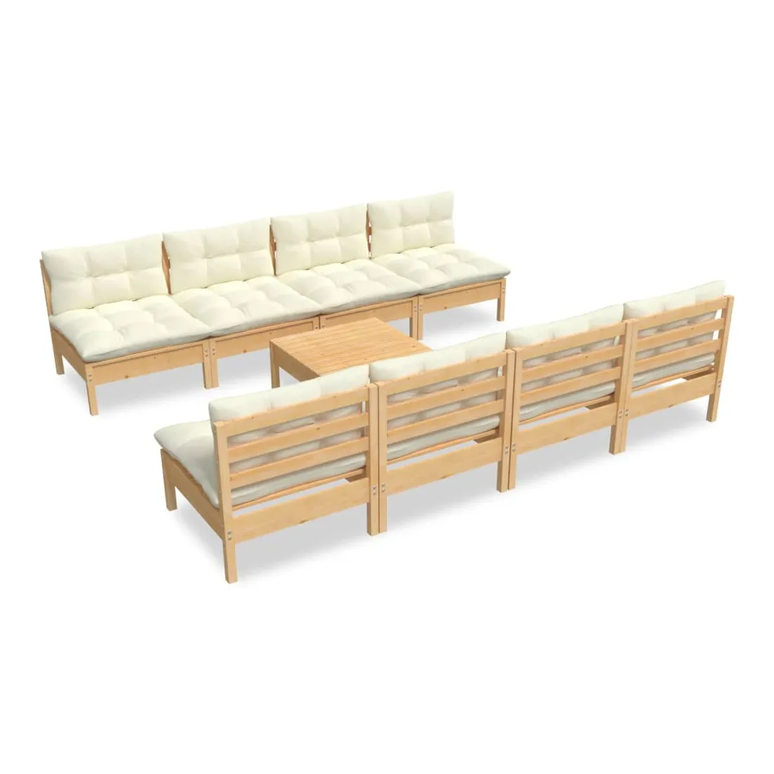 Ce salon de jardin est un excellent choix pour vous détendre et profiter du beau temps, faire une sieste ou discuter avec votre famille ou vos amis. Le salon de patio est fabriqué en bois de pin massif, ce qui le rend robuste et stable. Les coussins ajoutent un confort supplémentaire. Vous pouvez le combiner avec d’autres segments modulaires pour créer vos propres configurations de salon de jardin ! Remarque : afin de prolonger la durée de vie des meubles d'extérieur, nous vous recommandons de les protéger avec une housse imperméable.