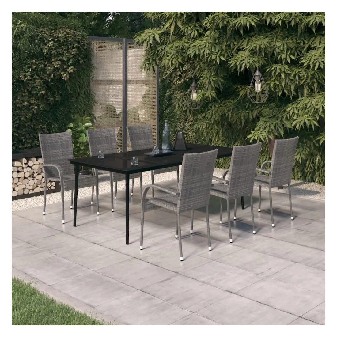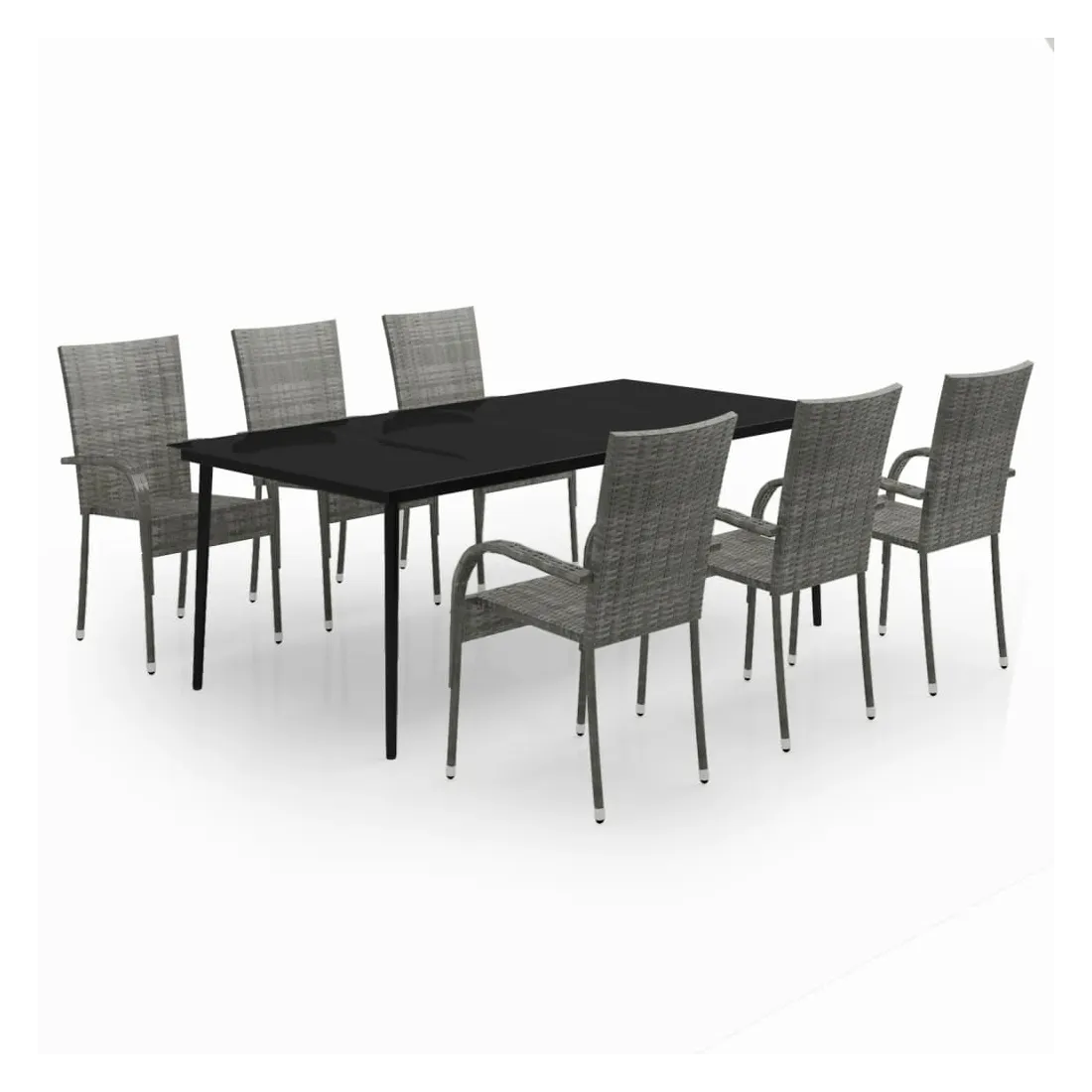 Ensemble à manger de jardin 7 pcs Gris et noir