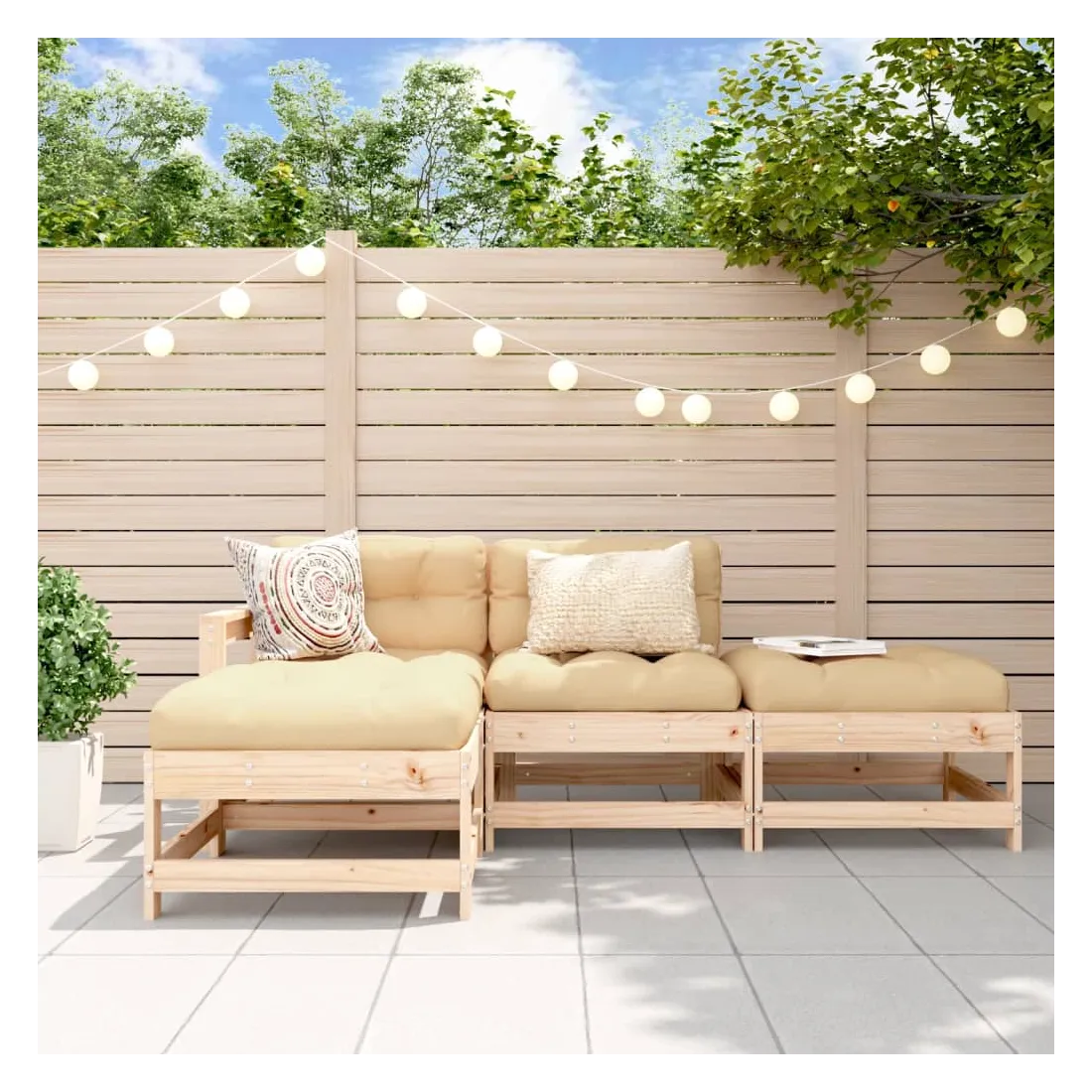 Ce salon de jardin en bois, qui se démarque par son design à lattes et ses coussins moelleux, sera un excellent supplément à votre jardin, patio ou terrasse pour profiter d'un moment agréable avec votre famille ou vos amis. Bois de pin massif : le bois de pin massif est un matériau naturel magnifique. Le bois de pin a un grain droit et les nœuds donnent au matériau son aspect caractéristique et rustique.Cadre robuste et stable : le cadre en bois rend l'ensemble de salon robuste et stable pour une utilisation quotidienne à l'extérieur.Expérience d'assise confortable : le dossier et l'accoudoir ajoutent un confort d'assise supplémentaire à l'ensemble de meubles de jardin. De plus, les coussins bien rembourrés vous permettent de vous asseoir confortablement.Design modulaire : le canapé est flexible et facile à déplacer. Vous pouvez le combiner avec d'autres segments modulaires de la boutique en ligne pour créer vos propres configurations de salon de jardin ! Bon à savoir :Pour que vos meubles d'extérieur restent beaux, nous vous recommandons de les protéger avec une housse imperméable.