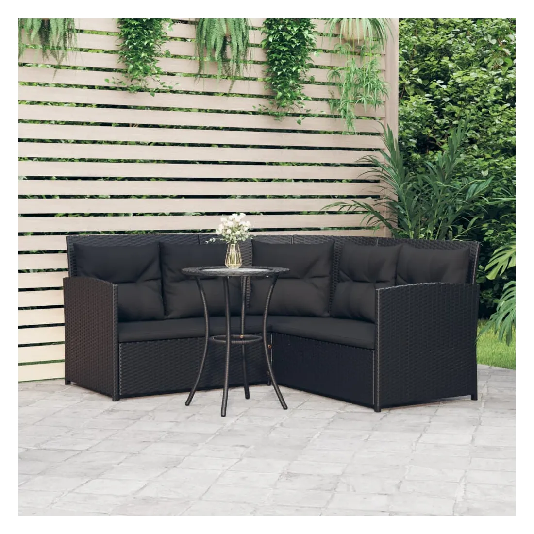 Ensemble de canapés en L 2pcs avec coussins Noir Résine tressée