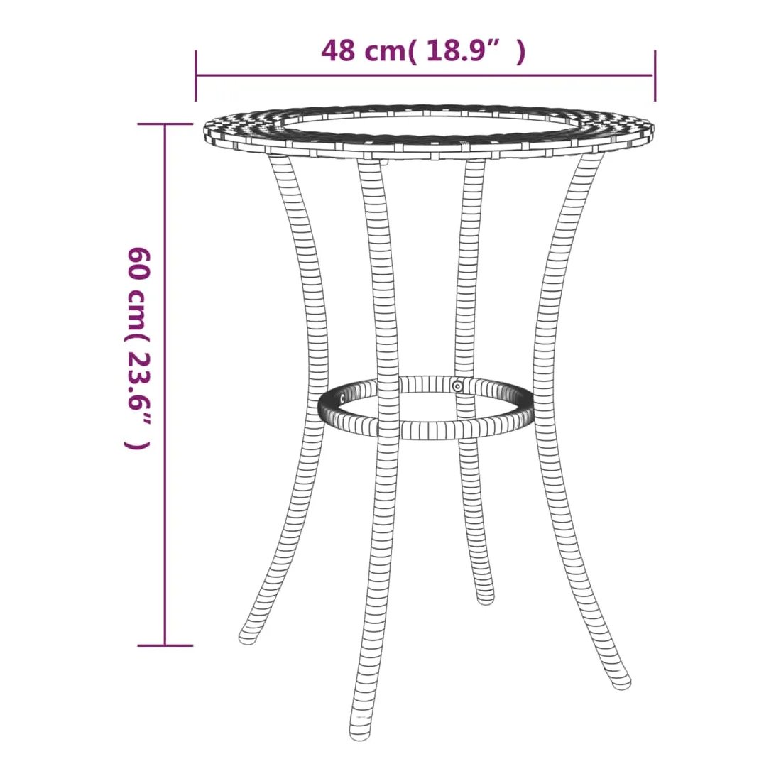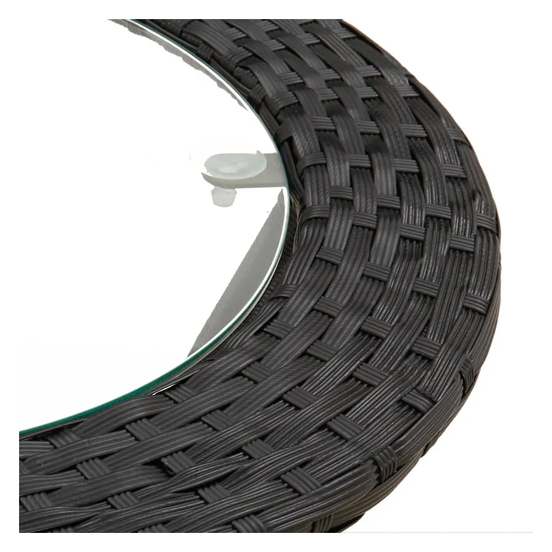 - Matériau : acier enduit de poudre, verre, polyéthylène avec un aspect de rotin