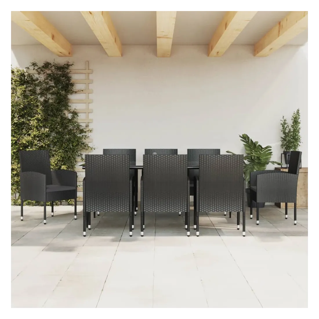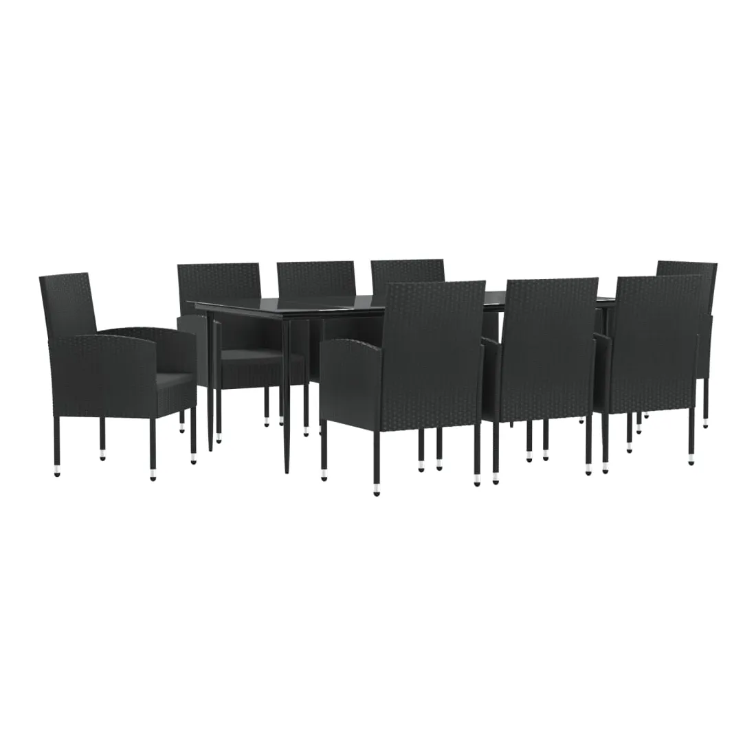 Profitez d'un bon repas ou d'un thé l'après-midi dans votre espace extérieur avec cet ensemble de salle à manger de jardin ! Ayant un design élégant, il deviendra le point central de votre jardin et de votre terrasse ! Matériau haut de gamme : la résine tressée est un matériau de résistance exceptionnelle et durable dans différentes conditions météorologiques.Cadre robuste : cette table et cette chaise de jardin sont construites avec un cadre en acier, ce qui assure robustesse et stabilité.Dessus de table pratique : le dessus lisse de la table à manger est en verre trempé, facile à nettoyer avec un chiffon humide. De plus, le dessus robuste est parfait pour placer des repas, des boissons et d'autres objets décoratifs.Expérience de siège confortable : les coussins de siège épais et amovibles sont inclus pour votre confort. Bon à savoir :Pour que vos meubles d'extérieur restent beaux, nous vous recommandons de les protéger avec une housse imperméable.