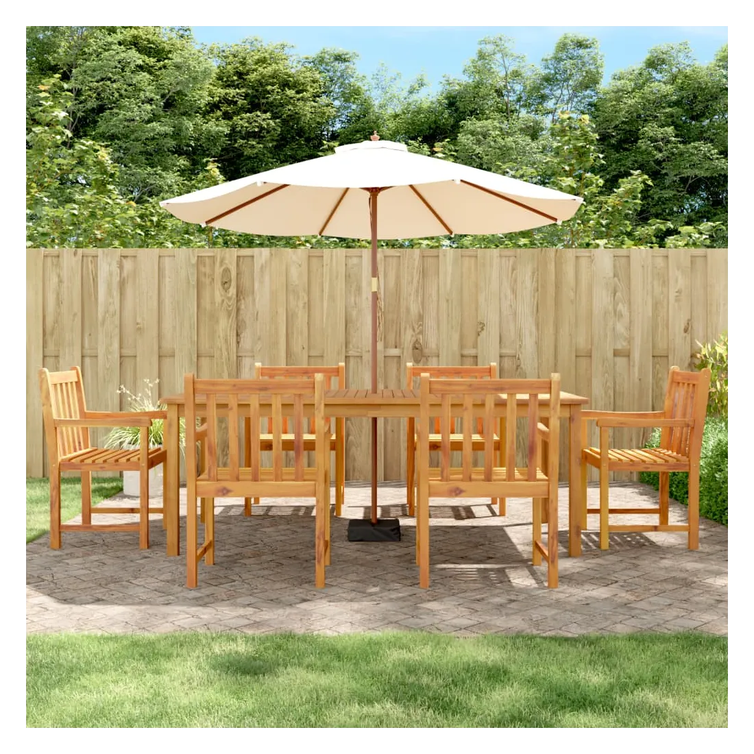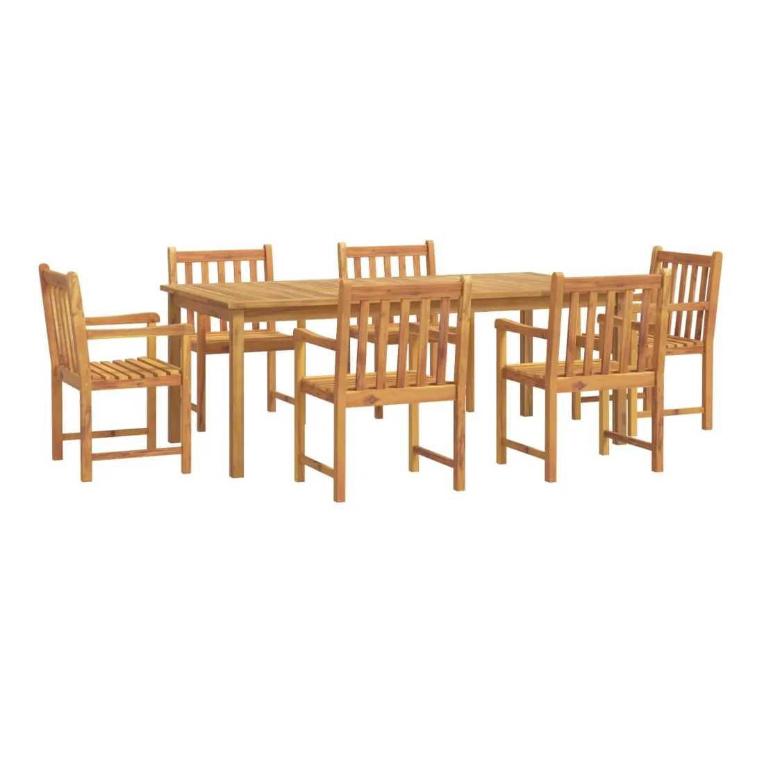 vidaXLProfitez d'un bon repas ou d'un thé l'après-midi dans votre espace extérieur avec cet ensemble à manger de jardin en bois ! Bois d'acacia massif : le bois d'acacia massif est un matériau naturel magnifique. Le bois d'acacia un bois dur tropical, qui est dense, robuste et durable.Dessus de table pratique : le dessus de table robuste de la table à manger permet de placer des collations, des paniers de fruits, des objets décoratifs et d'autres objets nécessaires.Assise confortable : la chaise à manger est conçue avec un dossier et des accoudoirs pour vous offrir une expérience d'assise confortable. Bon à savoir :Pour que vos meubles d'extérieur restent beaux, nous vous recommandons de les protéger avec une housse imperméable.