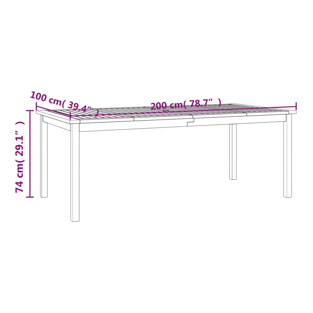 - Dimensions : 200 x 100 x 74 cm (L x l x H)