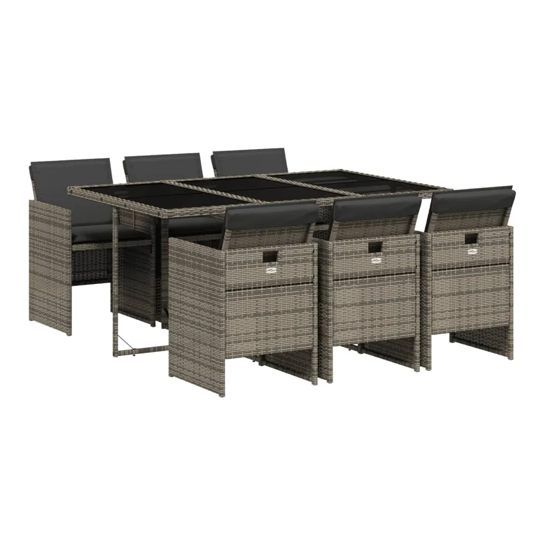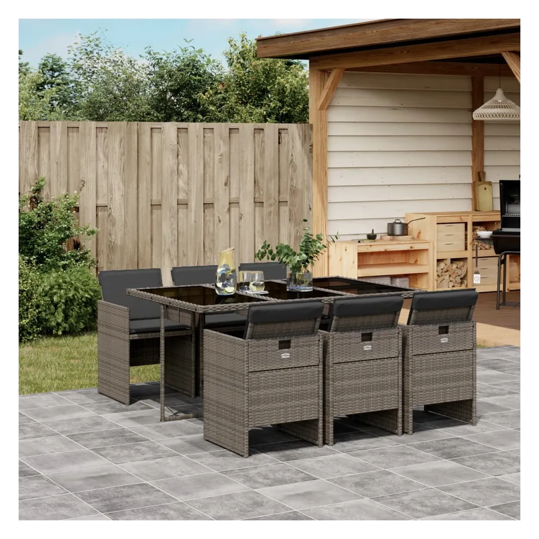 Cet ensemble de salle à manger de jardin est un excellent choix pour les repas en plein air ou pour vous détendre dans le jardin, dans l'arrière-cour ou sur la terrasse. Matériau durable : la résine tressée, également connue sous le nom de poly rotin, est un matériau synthétique solide et nécessitant peu d'entretien qui ressemble au rotin naturel. Il est léger, facile à nettoyer et couramment utilisé pour les meubles d'extérieur en raison de sa durabilité et de ses propriétés de résistance aux intempéries.Rangement compact : ces chaises sont dotées d'un dossier rabattable, ce qui permet de les ranger facilement sous la table. Une fois pliées, elles se rangent parfaitement sous la table, formant un cube peu encombrant. Expérience d'assise confortable : ce mobilier d'extérieur, doté de coussins épais, offre une expérience d'assise confortable.Housse amovible et lavable : ces coussins de siège sont dotés de housses amovibles pour un lavage et un entretien faciles.Dessus en verre : le dessus de la table d'extérieur est fabriqué en verre trempé solide et durable, ce qui le rend facile à nettoyer avec un chiffon humide et ajoute une touche d'élégance à votre espace extérieur. Bon à savoir : Pour que vos meubles d'extérieur restent beaux, nous vous recommandons de les protéger avec une housse imperméable.