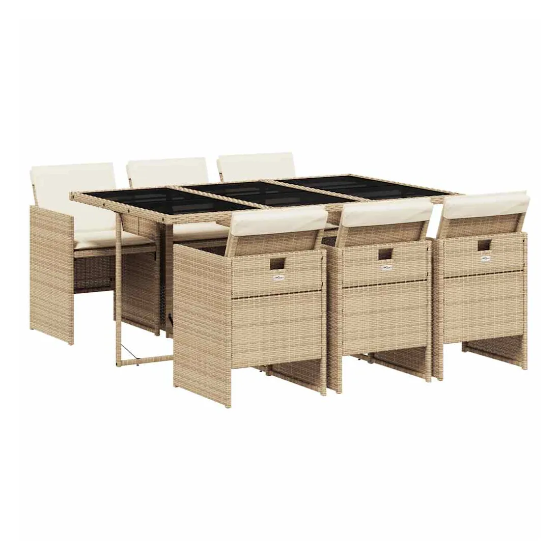 Cet ensemble de salle à manger de jardin est un excellent choix pour les repas en plein air ou pour vous détendre dans le jardin, dans l'arrière-cour ou sur la terrasse. Matériau durable : la résine tressée, également connue sous le nom de poly rotin, est un matériau synthétique solide et nécessitant peu d'entretien qui ressemble au rotin naturel. Il est léger, facile à nettoyer et couramment utilisé pour les meubles d'extérieur en raison de sa durabilité et de ses propriétés de résistance aux intempéries.Rangement compact : ces chaises sont dotées d'un dossier rabattable, ce qui permet de les ranger facilement sous la table. Une fois pliées, elles se rangent parfaitement sous la table, formant un cube peu encombrant. Expérience d'assise confortable : ce mobilier d'extérieur, doté de coussins épais, offre une expérience d'assise confortable.Housse amovible et lavable : ces coussins de siège sont dotés de housses amovibles pour un lavage et un entretien faciles.Dessus en verre : le dessus de la table d'extérieur est fabriqué en verre trempé solide et durable, ce qui le rend facile à nettoyer avec un chiffon humide et ajoute une touche d'élégance à votre espace extérieur. Bon à savoir : Pour que vos meubles d'extérieur restent beaux, nous vous recommandons de les protéger avec une housse imperméable.